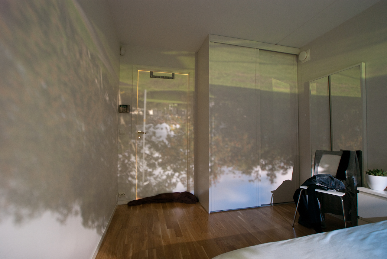 Maranello Skrevet 23. august 2009 Skrevet 23. august 2009 Lagde soverommet om til et svært pinhole kamera her en dag, artig å se effekten "live"! Finnes en del bilder på flickr av andre som har prøvd det samme, men helt spesielt å se det på egen vegg! Hadde ikke de beste lysforholdene, overskyet og en sol som tittet frem i ny og ne. Ikke så spennende motiv heller, men fungerte iallefall. Anbefaler andre å teste det samme, kanskje samle det i denne posten? Fremgangsmåten er den samme som når du lager pinhole kamera i liten skala selvsagt: :: Bruk et rom som er noelunde kvadratisk, med en tom vegg i motsatt ende av vindusveggen. (En god utsikt hadde jo også vært greit da... ) :: Prøv å få rommet lystett. Jeg brukte søppelsekker foran vinduet + tape... og mer tape. :: Lag et hull i det du dekker vinduet med. Her må du nesten prøve deg frem, jeg hadde et hull på størrelse med en 20-kroning, men med godt lys ute tror jeg at man får skarpere "projeksjon" med noe mindre hull. Tada! (Nå kaller jeg dette kingsize da, men fant nettopp denne linken: World's largest photo taken in defunct El Toro base hangar)