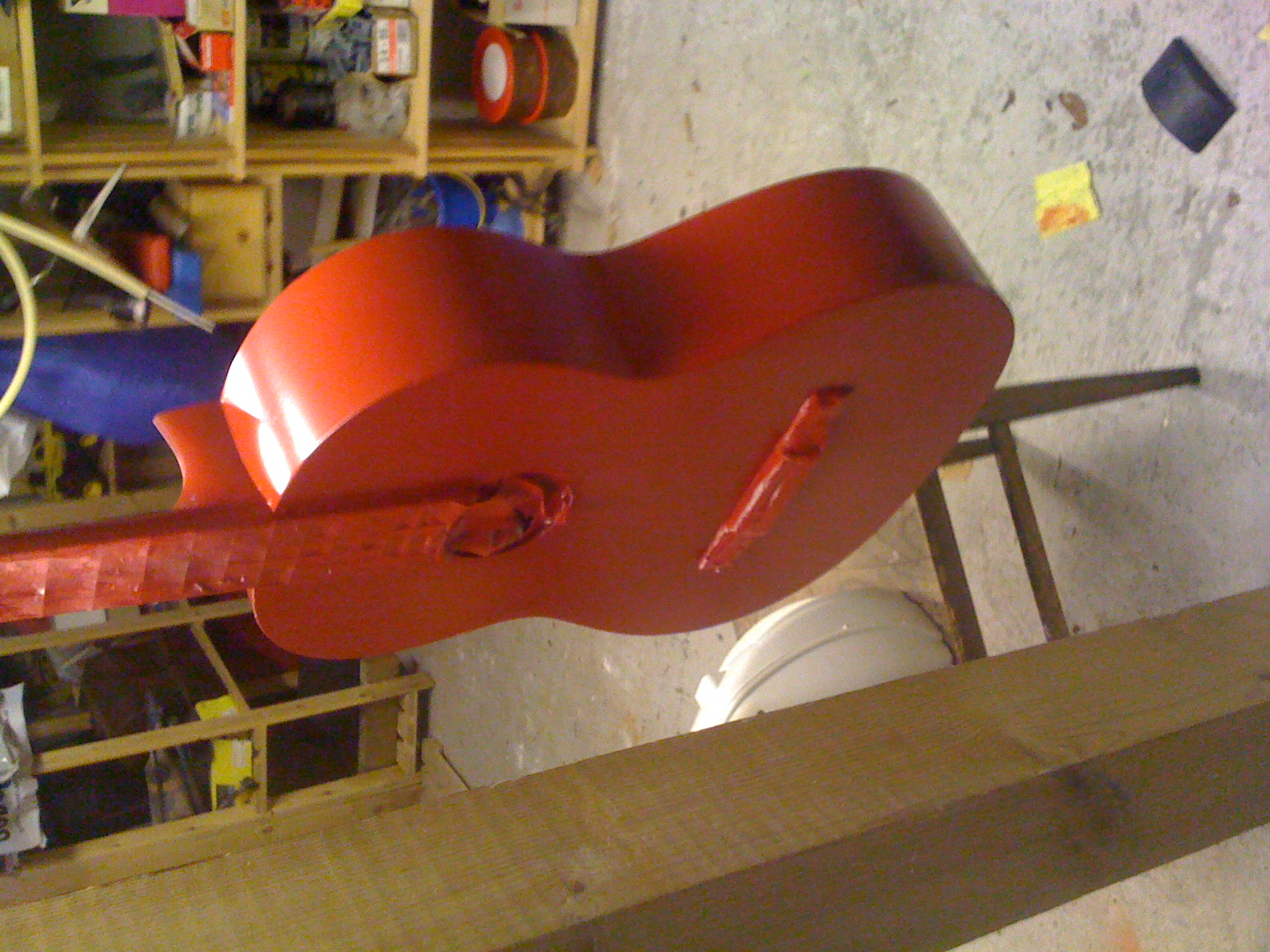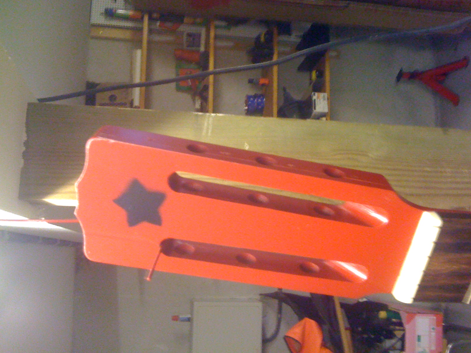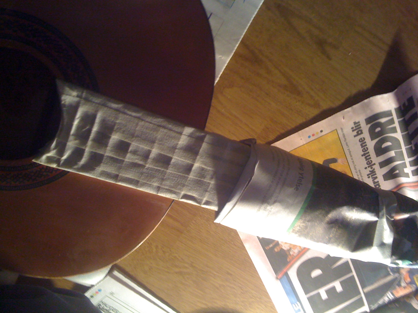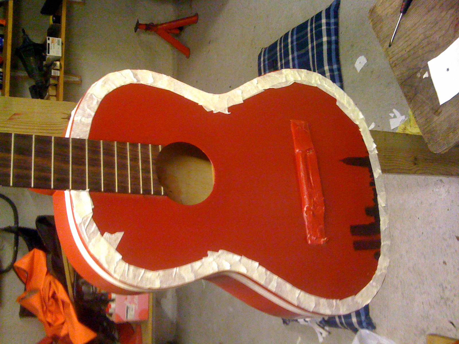 iqlizer Skrevet 28. august 2009 Skrevet 28. august 2009 (endret) Hei, En kompis og jeg har startet med et lite "design/lakkerings" prosjekt av en gammel gitar. Planen er å få grunnet den med en slags rødfarge, og i tilegg ha et mønster/motiv framme på gitaren. DAG1. Holder på å pusse vekk den gamle lakken/fargen. Maskeringsteip på plass. Delvis ferdig spray bak, skal pusse noe på nytt imorgen (beklager for dårlig bildekvalitet) Fargen på det siste bildet er ikke helt som i rl, skal prøve å ta bilder av fargen på gitaren imorgen. DAG2 Grunnfargen er ferdig. Motivet som skal være frampå gitaren. DAG 3 OG 4 Startet med å maskere alt utenom linjen som vi skulle spraye. En ikke helt perfekt stjerne.. Endret 31. august 2009 av larven