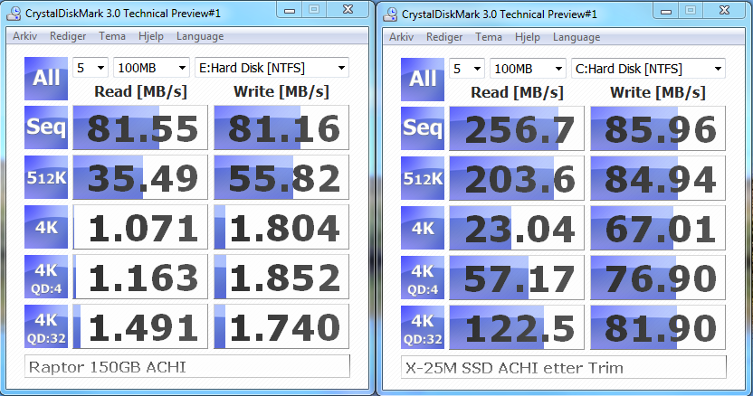 Anv Skrevet 15. desember 2009 Skrevet 15. desember 2009 Fine resultater dredg, Husk å oppgi alle detaljer, SSD, Chipset etc. (ser du har det i signaturen men du kan gjerne referere til den slik at man vet at det er det du har testet med)