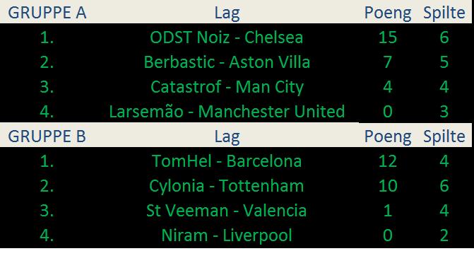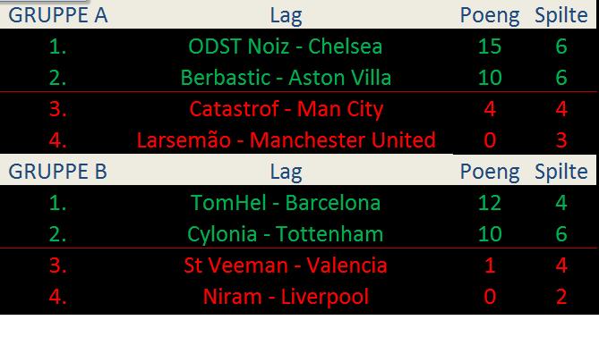Gjest Slettet-EIV2CS Skrevet 12. oktober 2009 Skrevet 12. oktober 2009 My bad. Hadde skrevet inn walkover i den oppdaterte tabellen mot meg. Du må vinne alle 4 kampene for avansement