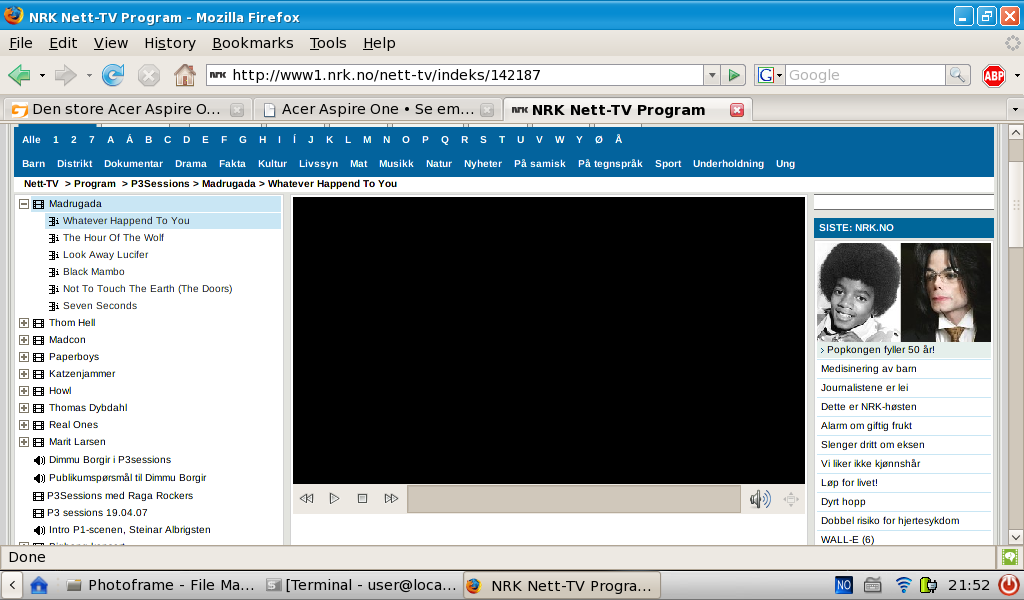 egya Skrevet 28. august 2008 Skrevet 28. august 2008 (endret) Jeg sliter også litt med nrk nett-tv. Med firefox fikk jeg først et blankt vindu, så installerte jeg gecko fra denne guiden. (http://theragnaros.com/forum/viewtopic.php?f=3&t=34&sid=2a0a9644dff738029237d6600dea4925) Dette virket dårlig, da jeg fikk opp medievinduet på nrk, men aldri noen videoavspilling. Jeg uninstallerte så gecko, og sitter nå med at firefox sier jeg trenger en plugin den ikke vil installere. Er veldig ny som bruker av linux, og føler jeg begynner å forstå basicen, men her står jeg altså fast. Jeg har hørt noe om "mono", også via nrks sider. Er dette noe som vil fikse det? Jeg har også letet en del etter svar på dette problemet, og har ikke helt fått til å installere moonlight. Jeg kommer altså ikke løpende med spørsmål før jeg i det hele tatt har googlet det. Slik ser det ut med gecko for øyeblikket: Ja, den guiden er ikke helt komplett. Du trenger å laste ned og legge en del codecs i den rette katalogen. Installer også gecko på nytt. Gjør dette i terminalen: wget -c http://www.mplayerhq.hu/MPlayer/releases/c...0071007.tar.bz2 <enter> (Obs! Jeg får dessverre ikke denne sida til å vise hele stien til fila) tar -jvxf all-20071007.tar.bz2 <enter> sudo mv -f all-20071007/* /usr/lib/codecs <enter> Du kan også kjøre skriptet slik: wget http://home.no.net/egya/firefox3_all <enter> sudo sh firefox3_all <enter> Når Sun sin lisenstekst for java kommer opp, hold nede Ctrl-tasten mens du trykker c. Skriv "yes" (hvis du godtar lisensen) og trykk enter. Endret 28. august 2008 av egya