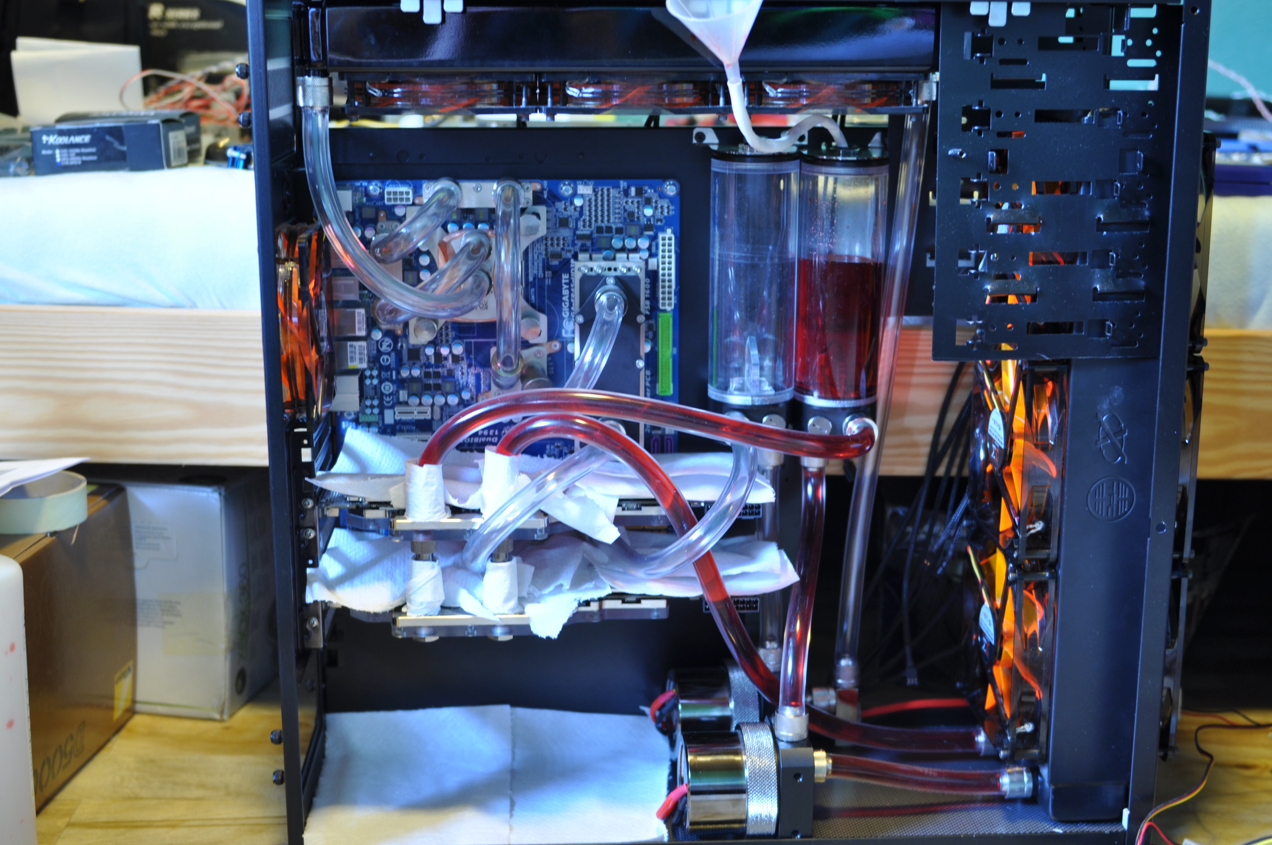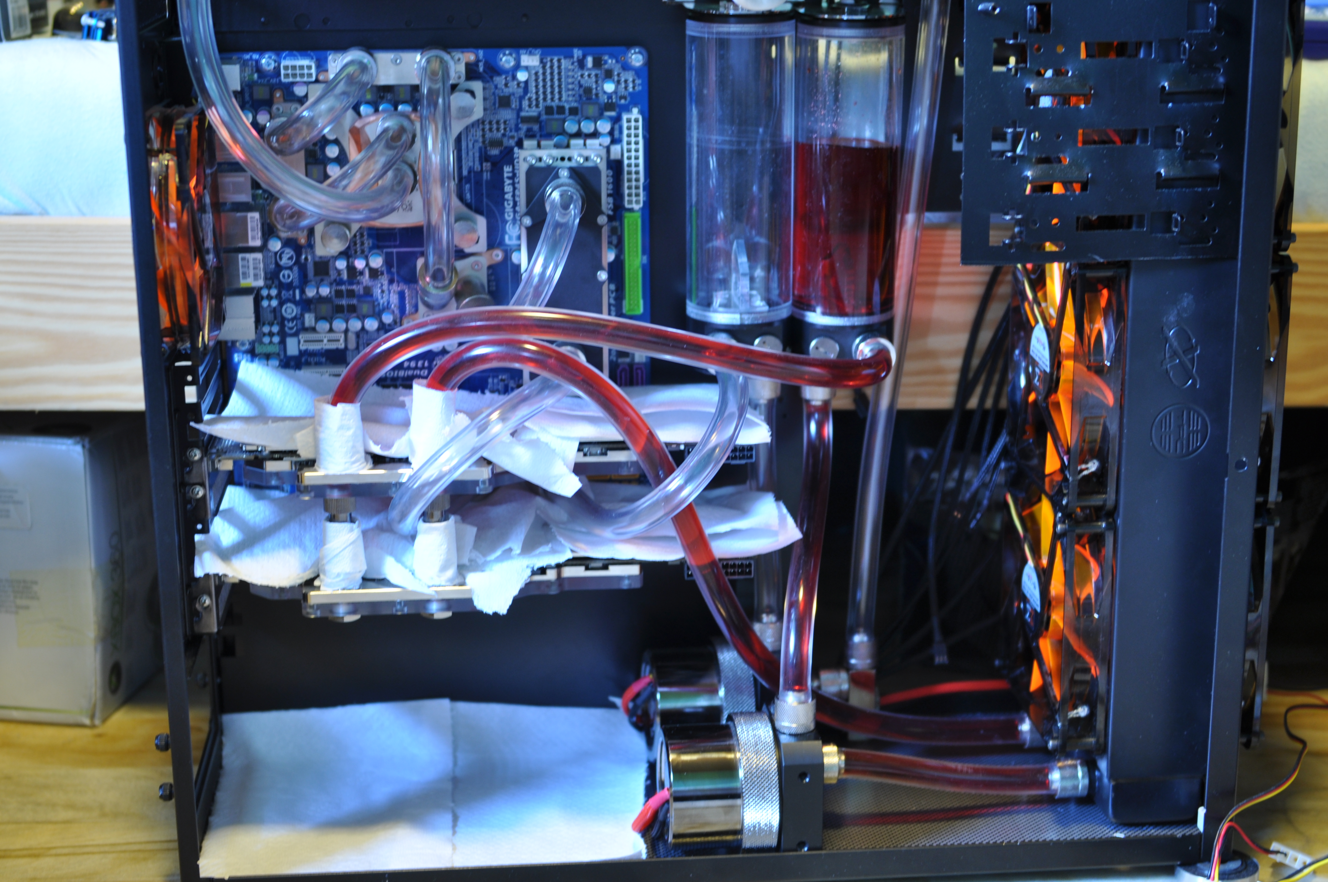 turbo_fever Skrevet 29. mai 2011 Forfatter Skrevet 29. mai 2011 (endret) Da har jeg startet på prosjektet litt igjenn Håper jeg gjør det ferdig nå da. Har fått på plass slanger slik dem sikkert blir. Fyllt gpu loop nå, og tester for lekasje. Blir å teste nesste loop imårra. Det som er igjenn er vel å sleeve 1-2 kabler på psu. Der er jeg redd for at det blir trangt, og att jeg ikke får gjemt kabler sikkelig. Fikse front med plexi å større mesh grill. Og få på plass vifte kontrollere + pumpe styring. Lover ikke det skjer så mye, men lov å håpe.. M40'S Lian Li PC-B70 Komemntar tråd Endret 29. mai 2011 av turbo_fever