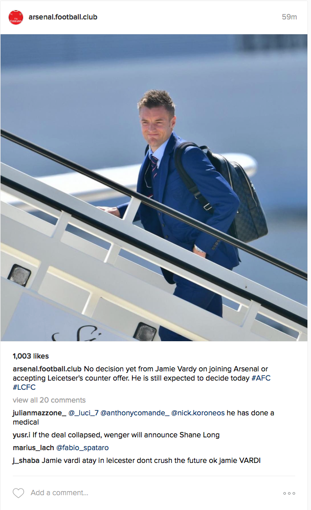 atwater Skrevet 6. juni 2016 Skrevet 6. juni 2016 (endret) Så ganske så legit ut, men vanskelig å si. EDIT: I følge SkySports kommer det ikke noen uttalelse i dag: http://www.skysports.com/football/news/11670/10305522/jamie-vardy-not-expected-to-make-decision-on-arsenal-move-on-monday-sky-sources Endret 6. juni 2016 av -lemoncake