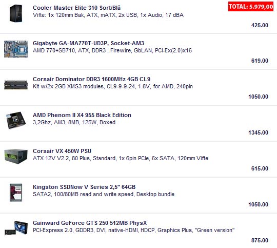 rhov23 Skrevet 2. desember 2009 Forfatter Skrevet 2. desember 2009 (endret) Et i5-oppsett vil gjøre jobben bra. Ville kjørt på med mye minne og en noe raskere SSD. Det blir noe dyrere, men det blir mye bang for buck. AMD gir også fantastisk ytelse for pengene, men jeg er litt Intel-fanboy. På sikt vil nok i5 være mer oppgraderingsvennlig også. Tusen takk for svar! Har snust litt rundt og kommet fram til dette: Ser det greit ut? http://www.komplett.no/k/shoplist.aspx?mod...8B-6C693F260C80 Har forresten et kabinett liggende. Kan jeg bruke dette? Kjøpt i 2003 og er kliss lik dette i utseende. http://www.hardware.no/artikler/chieftec_d..._dx01-sld/15497 Hadde jeg bare klart å få banket det ned til 6000 kr (utenom frakt) hadde jeg vært lykkelig. Er skjermkortet forresten god økonomi, eller bør jeg velge noe annet? Endret 3. desember 2009 av rhov23