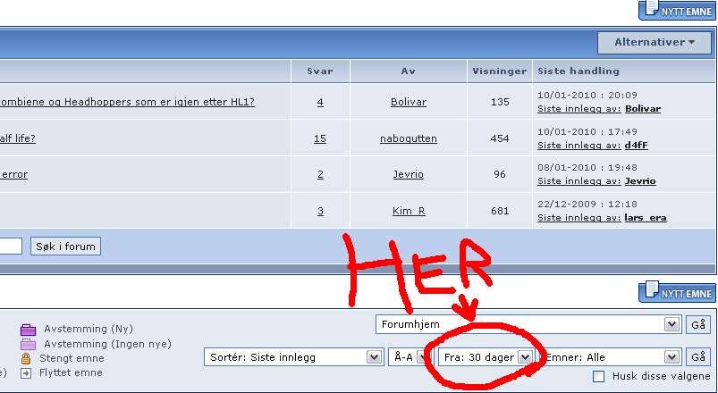 cowboy bob Skrevet 17. januar 2010 Skrevet 17. januar 2010 Viser bare innlegg fra de siste 30 dager, bytt til vis alle innlegg. Hvordan gjør man det?