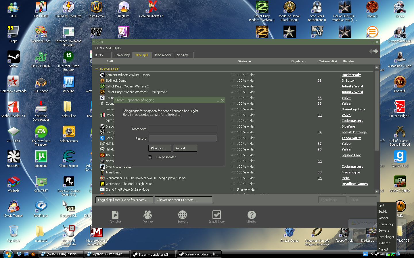 Krissma512 Skrevet 3. januar 2010 Forfatter Skrevet 3. januar 2010 jeg trykka på steam så kom jeg inn på account men alt låste seg så kom det bare en melding opp det sto: (pålogginformasjonen for denne kontoen har utgått) her er det et bilde