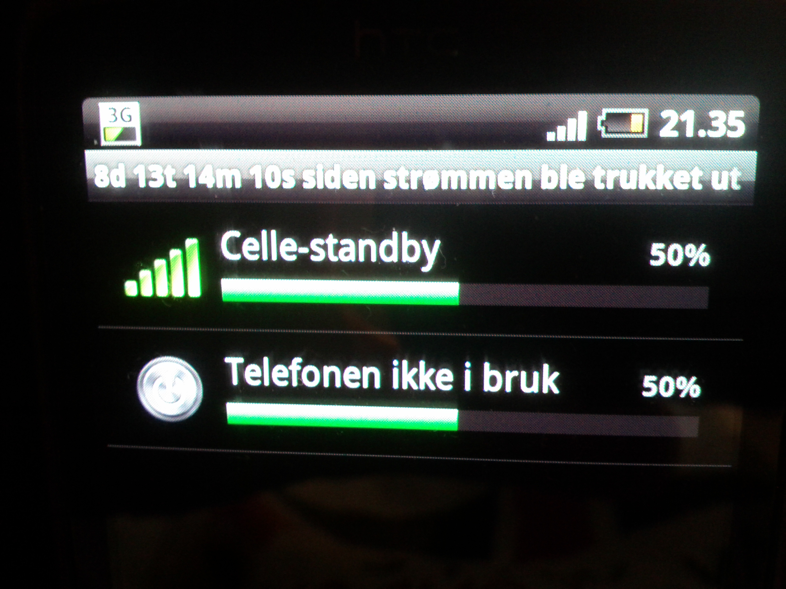 Syar-2003 Skrevet 8. juli 2011 Skrevet 8. juli 2011 (endret) HTC Desire er konge ... 205 timer ( 8d og 13t) siden strømmen er trukket ut - Batteri nivå på 17% . Endret 8. juli 2011 av syar2003