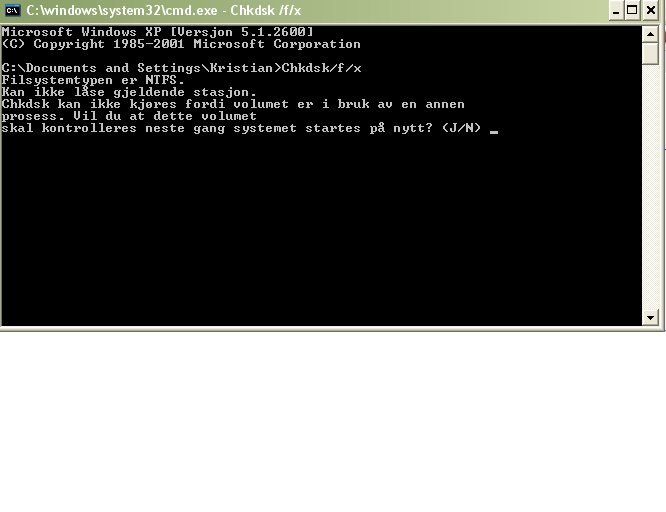 osse-mon waits for alice Skrevet 18. februar 2010 Skrevet 18. februar 2010 (endret) Men selv om spotify bruker plass, så bør det registreres et sted Klikk start - kjør og skriv cmd Skriv Chkdsk /f /x - eventuelt /r /x om du har norsk versjon. Du blir spurt om du vil starte chkdsk neste gang du rebotter. Velg ja, og start på nytt. Endret 18. februar 2010 av Osse-Mon