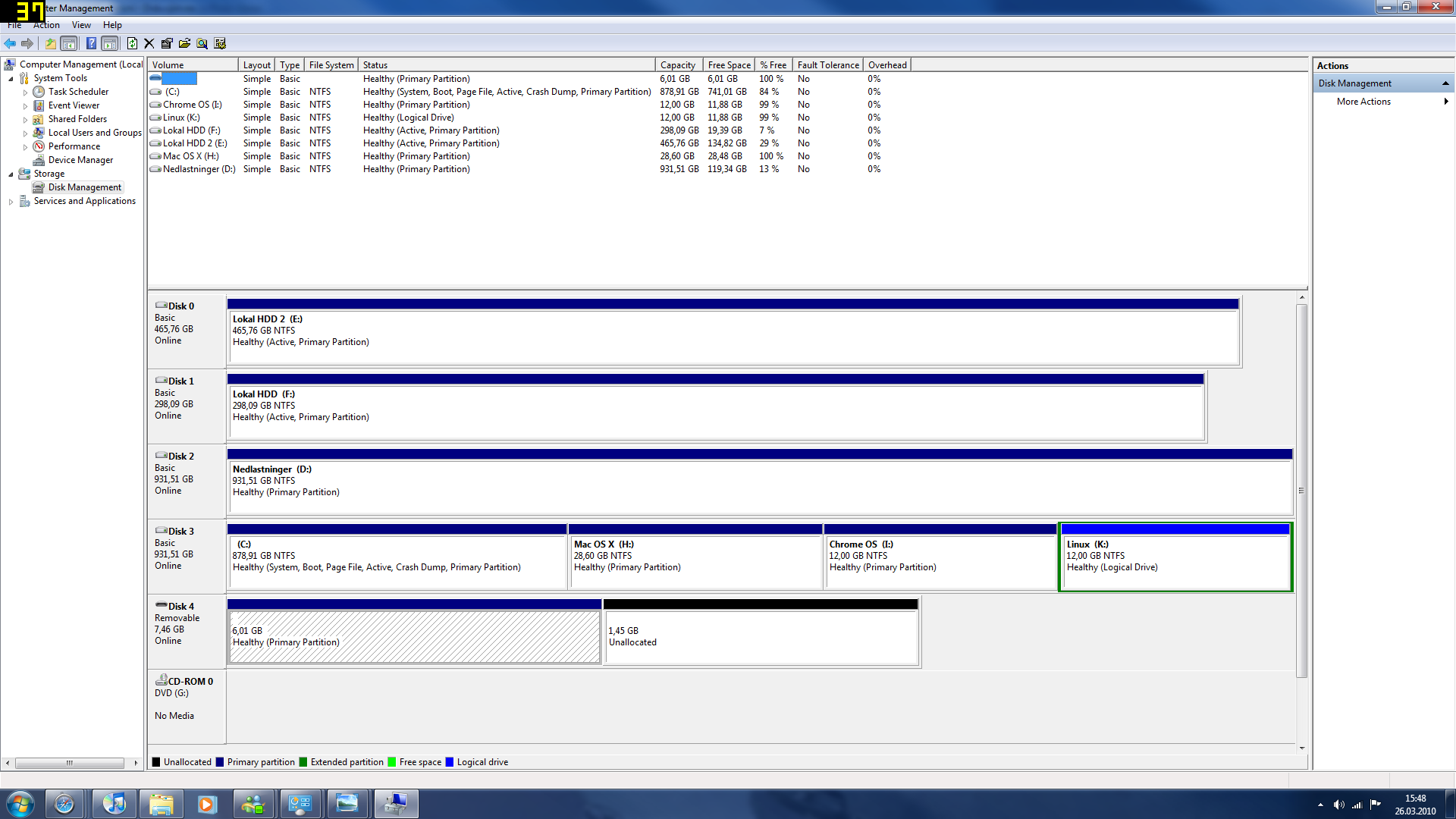 chriss10an Skrevet 26. mars 2010 Skrevet 26. mars 2010 (endret) Du kan bruke diskbehandling. du må bare minimere disken først også må lager du ny partisjon av den ledige plassen du har seperert vekk. Som du kansje ser på bildene, så har jeg alleder seperet den ene harddisk en min opp i 4 forskjelli partisjoner. Det tok meg ikke mer en kansje 5 minutter å gjøre det, så det skal ikke være så vanskelig. Dwm 2010-03-26 15-19-45-71.bmp Dwm 2010-03-26 15-19-50-61.bmp Dwm 2010-03-26 15-20-03-17.bmp Dwm 2010-03-26 15-48-28-90.bmp Dwm 2010-03-26 15-48-45-52.bmp Endret 26. mars 2010 av chriss10an