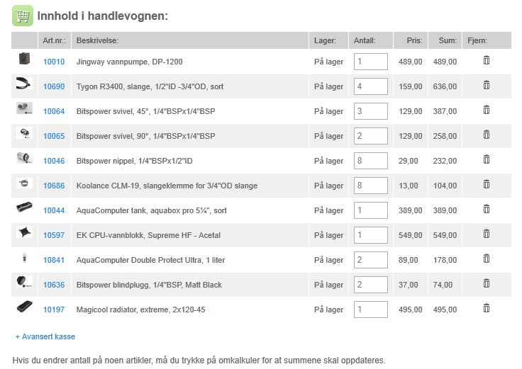 The Crusher Skrevet 10. september 2011 Skrevet 10. september 2011 Hei. Jeg vurderer og kjøpe meg vannkjøling, men har ikke peiling på hva jeg skal velge av deler. Vil ha det billigst mulig, og har kommet fram til dette: totalpris: 3791. Det synes jeg var en grei pris, men nå har jeg rett og slett ikke peiling på vannkjøling. Ser dette greit ut? jeg skal bare kjøle ned cpu, nå for tiden er det en Phenom II X6 1055T, men skal ha buldozer når det kommer ut. Er det noe man må passe på om man har vannkjøling? Noe vedlikehold som må gjøres ofte? Alt skal inn i et Fractal Design Arc. Blir trangt, men det går greit så lenge jeg har god kjøling..