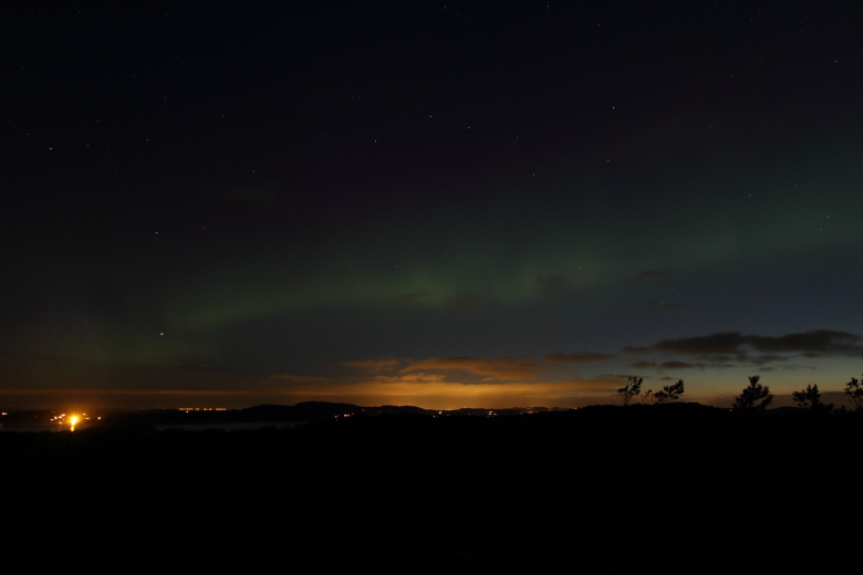Nå var det litt antydning til et grønt bånd i nord her. Men for svakt til å ta noe bilde av.
