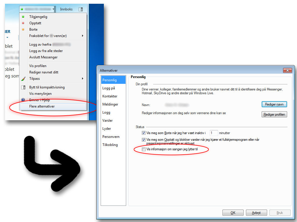 3488445600 Skrevet 9. oktober 2010 Skrevet 9. oktober 2010 (endret) Trykk på navnet ditt -> Flere alternativer -> Merk "Vis informasjon om sangen jeg lytter til". Jeg bruker aldri denne funksjonen, så jeg vet ikke om det er rett. Men jeg tror det er der Endret 9. februar 2011 av AntonN2007