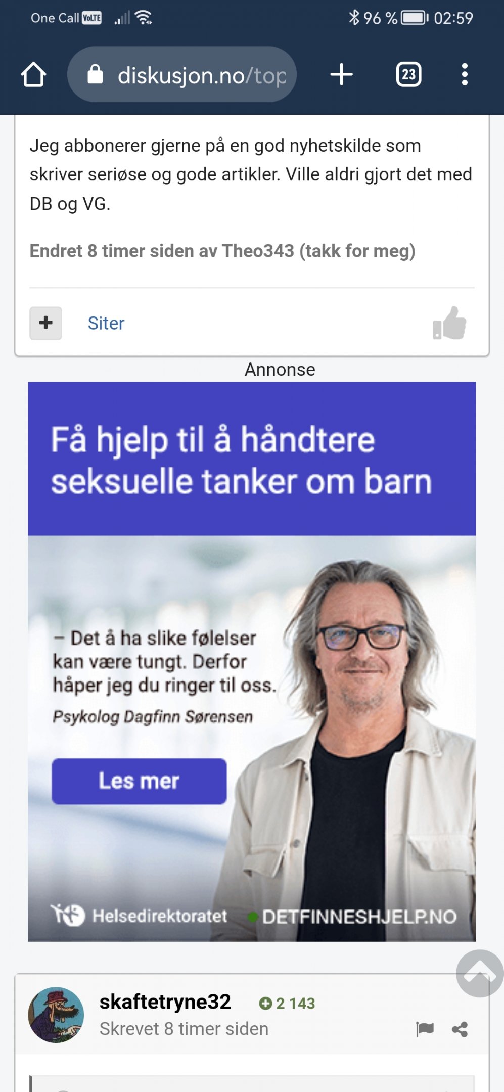 disk Skrevet 14. november 2022 Skrevet 14. november 2022 Det er ca 5+ år siden eg leste DB, og etterhvert fulgte nettavisen og så VG. Selv om eg aldri var inne på hovedsiden til VG, kun innenriks etc, så kom det mer og mer skit inn også der. Vi får de nyhetene folk klikker på, og eg er tydeligvis ikke folk flest da. Då holder eg meg utelukkende til lokalavisen enn så lenge.