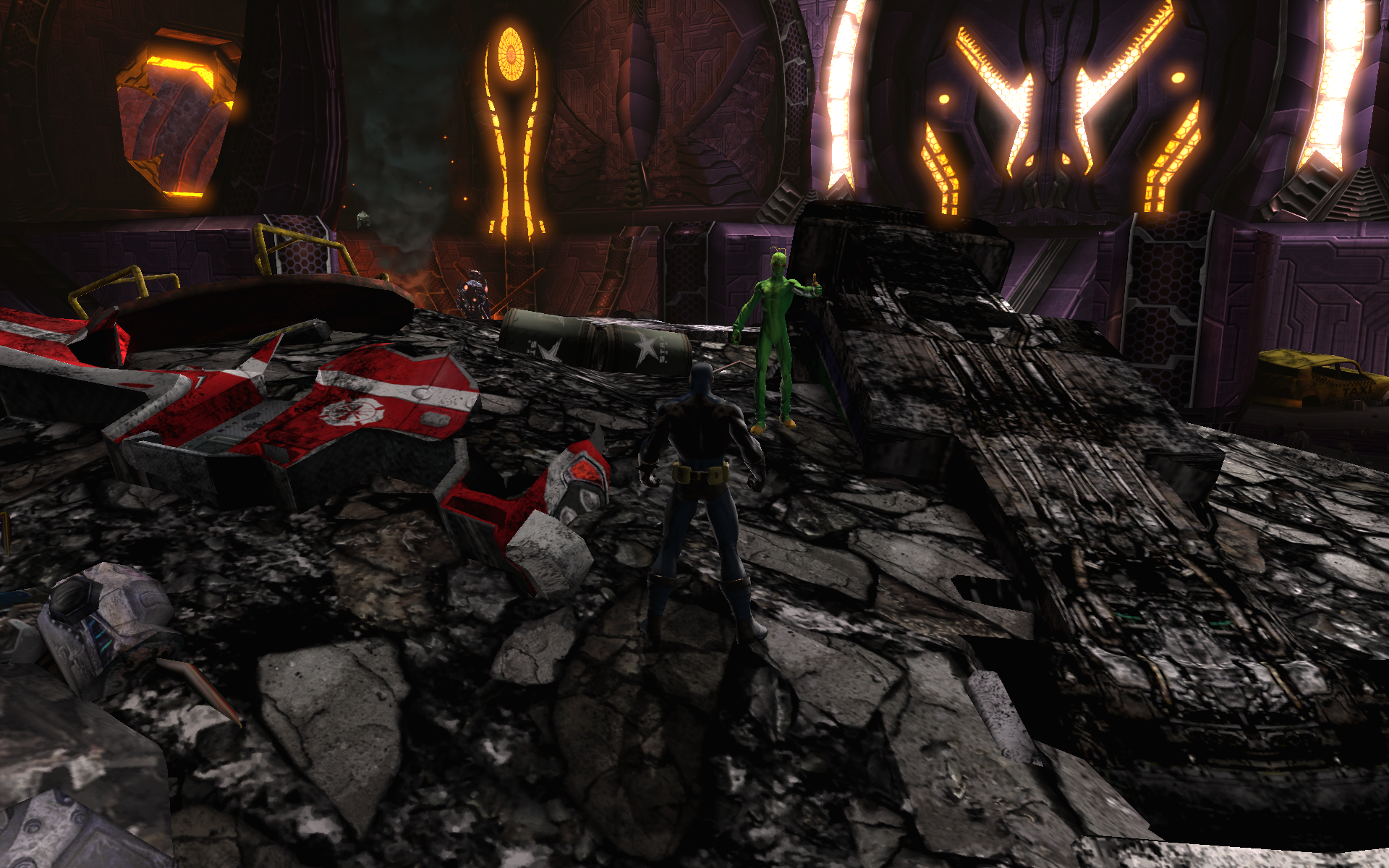 Orwandel Skrevet 11. februar 2011 Forfatter Skrevet 11. februar 2011 (endret) Jeg hadde igrunn ingen problemer med Dr. Psycho. Bare løp rundt og slo litt til jeg fant ham, så angrep kjapt med alle angrepene som gjorde mest skade fort. Han varte ikke lenge. Med enkelte våpen kan du sjonglere han i luften såpass lenge at han ikke får sjansen til å bli usynlig mer enn 2-3 ganger max. Lite nytt på Night Watch-fronten. Jeg har ikke spilt som Redline på en stund - er litt for glad i å starte alts - men det er bare å sende in-game mail hvis jeg skal legge til noen. Se hvem jeg traff på i Brainiacs skip helt i begynnelsen: MPYR0201_DESIGNERDATA-PC-03-21.16.550.bmp (oops... bmp-fil. jaja, shit happens) Endret 11. februar 2011 av Aurvan