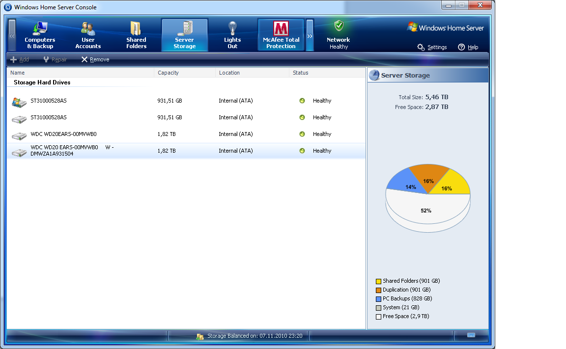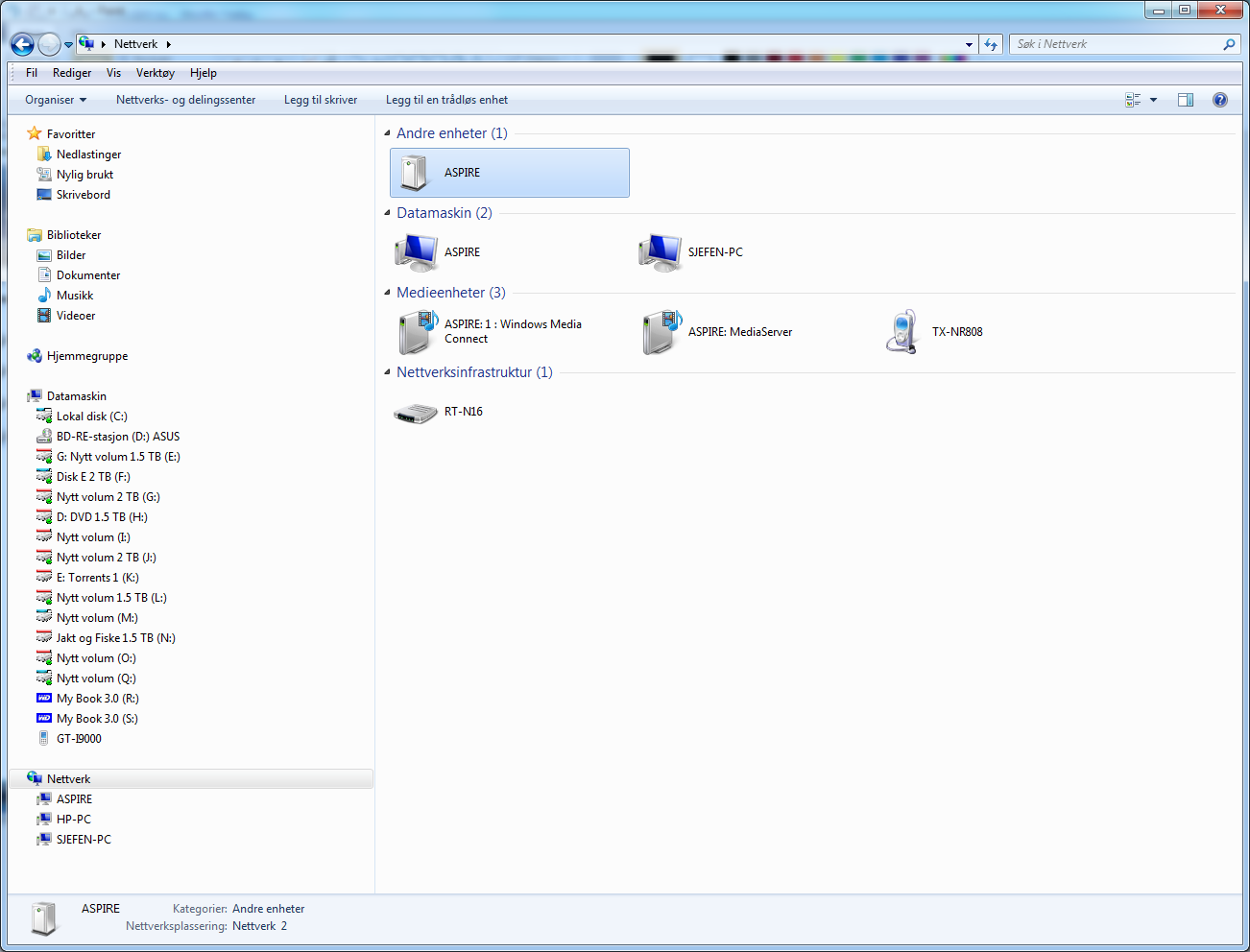 mhw357 Skrevet 8. november 2010 Skrevet 8. november 2010 Alt kan forklares! Ja, dataene deler seg ut over diskene automatisk, så det trenger ikke du tenke på Hvis du ser på kakediagrammet på "storage" siden, så ser du at du har brukt 901 GB på de delte mappene, 901 GB på at mappen(e) er duplisert (dvs. at den sprer dataene over flere disker, slik at du ikke mister det selv om ene disken tar kvelden - dette kan du hake av/på for hver mappe) og at 828 GB er brukt på backup av PCer. Alt i alt skulle vel det forklare all diskbruken din! For å koble en mappe opp mot en disk så bare høyreklikker du på en av mappene (på den Nettverk -> ASPIRE) og velger "koble til nettverksstasjon". Da kobler du den mappen opp mot en disk i Min datamaskin!