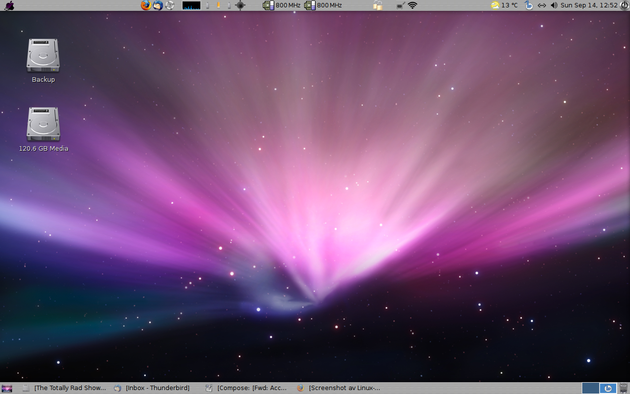Canute Skrevet 10. september 2008 Skrevet 10. september 2008 Endra litt paa desktopen, hvilken syns dere ser best ut?Litt Macish-ikoner men fant ingen andre ikoner i den stilen (trefarge) som hadde saa god kvalitet/opplösning. Hvilken font bruker du i gedit?