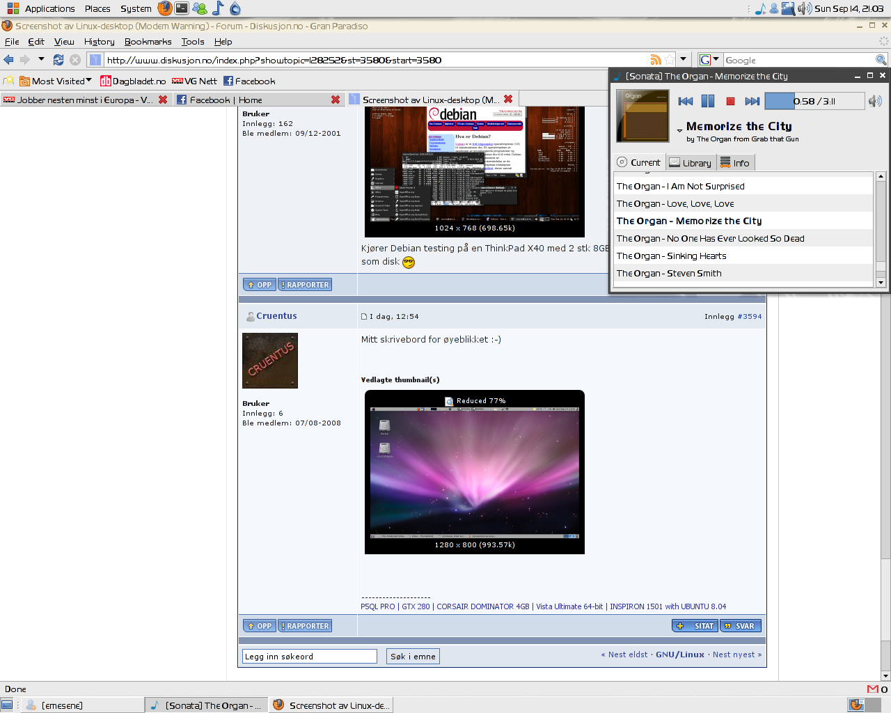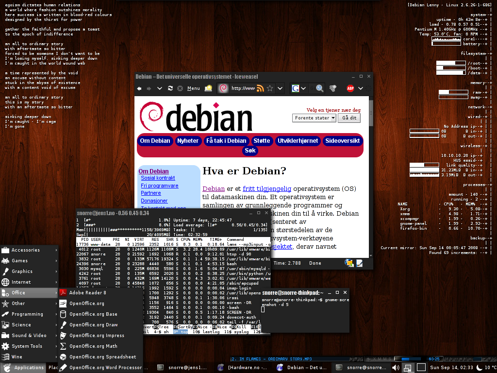 humbuq Skrevet 11. september 2008 Skrevet 11. september 2008 Min desktop for øyeblikket. Dvs. for et par dager siden, strengt tatt, men technicalities schmechnicalities.