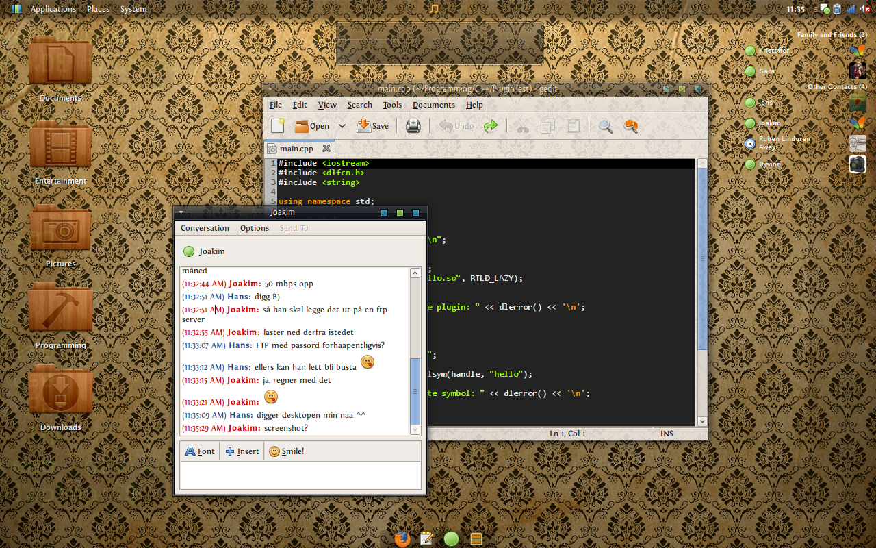 Rabbid Skrevet 10. september 2008 Skrevet 10. september 2008 "Gjennomsiktig Pidgin" er faktisk bare en screenlet (med forskjellige tema, Transparent lastet jeg ned og modifiserte til mine behov, la til Tango-ikoner osv). Bruker Ubuntu. Skal fyre opp en _komplett_ liste over endringer hvis noen er interessert.