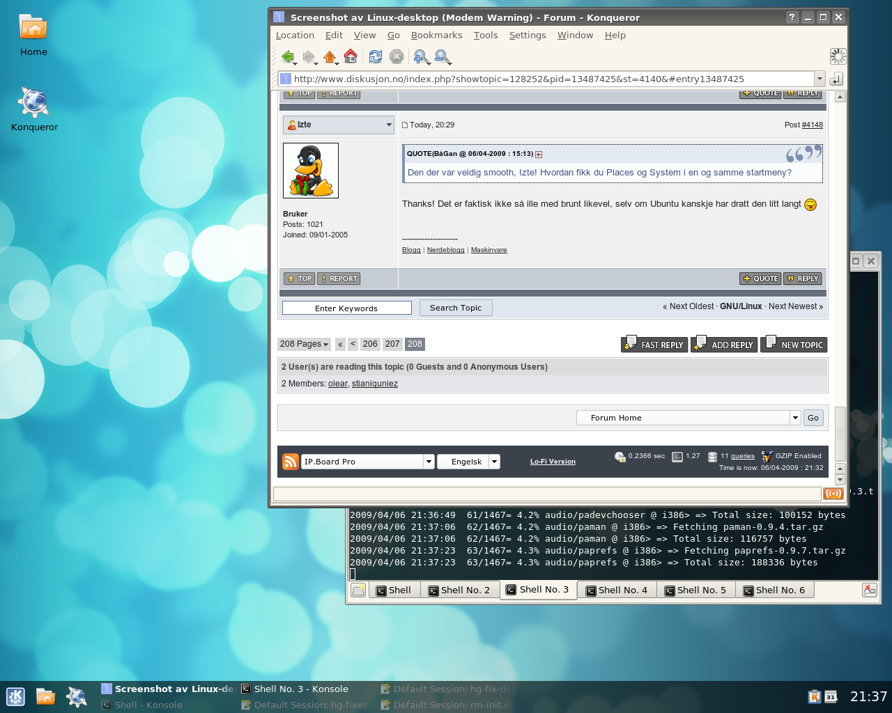 Mads-b Skrevet 7. april 2009 Skrevet 7. april 2009 Bestemte meg for en total remake av GUI'en her jeg sitter i vaktboden.. ^^ Helt mistet navnet på tingene jeg bruker, men mye hentet fra toppsidene på gnome-look