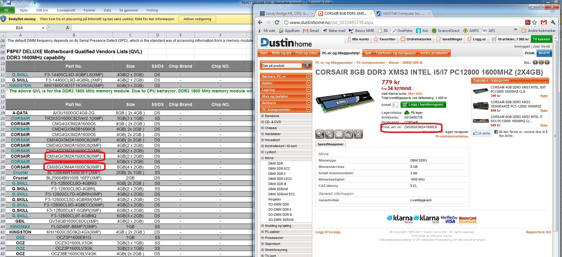 sprettmett Skrevet 3. februar 2011 Skrevet 3. februar 2011 Hmm har lest steder at folk har prøvd ram utenfor QVL og at det har fungert helt fint. Så jeg tror jeg prøver meg på den 2x4GB men hos komplett: http://www.komplett.no/k/ki.aspx?sku=616803 Noen innvendinger? OM andre har prøvd dette, og det har fungert, så skal ikke jeg si noe. Om du er villig til å gå ned en hastighet på rammen (til 1300MHz) kan du få denne som er på QVL. Men som sagt så kan det jo fungere å gå utenfor QVL også. Det er jo bare ASUS som ikke vil GARANTERE at det går!