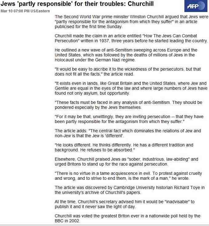 partlyinsaine Skrevet 13. juli 2017 Skrevet 13. juli 2017 , men vi kommer ikke unna at Nazistene faktisk regelrett massakrerte en god del mennesker som de vurderte som underdanige og som Hitler valgte å slå ned på ( Afrikanere blant annet ). Polakkene var ikke bedre enn Tyskerne om vi skal se på konkrete folkegrupper.. Selvfølgelig har dette skjedd før og det skjer enda på jorda mellom forskjellige grupperinger for å fremme sin sak / ideologi / økonomisk motivert , noe som igjen ikke gjør at dette er greit på noen måte. Tyskerne var ille, men har man lest litt historie vet man også at andre grupper har massakrert enorme mengder mennesker ( Russerne etter andre verdenskrig ) og det blir derfor nesten latterlig at man går så ofte tilbake til konkrete hendelser fra andre verdenskrig for å fremme hvor fryktelig dette var med tanke på alt det fryktelige som faktisk skjer nå... Legger ved ett utsnitt som forklarer endel om kommunisme. Så kan vi jo relektere endel over hvorfor kommunismen nærmest er frikjent for sine handlinger. Stephen Wise sa vel det at "noen kaller det antikommunisme", jeg kaller det for antijudaisme" Churchill skrev sitt innlegg fra 1920, ZIONISM versus BOLSHEVISM. A STRUGGLE FOR THE SOUL OF THE JEWISH PEOPLE, hvor jøder blir berømmet for de fleste revolusjoner. Inkludert den franske. Så neste klipp viser hvordan Churchill ble anklaget for anti semittisme i 1937. (leter fremdeles etter originalartikkelen) Siste klippet viser at Churchill faktisk var sionist. http://www.independent.co.uk/news/world/middle-east/sir-winston-churchill-zionist-hero-8277918.html Og med egen statue i Jerusalem.