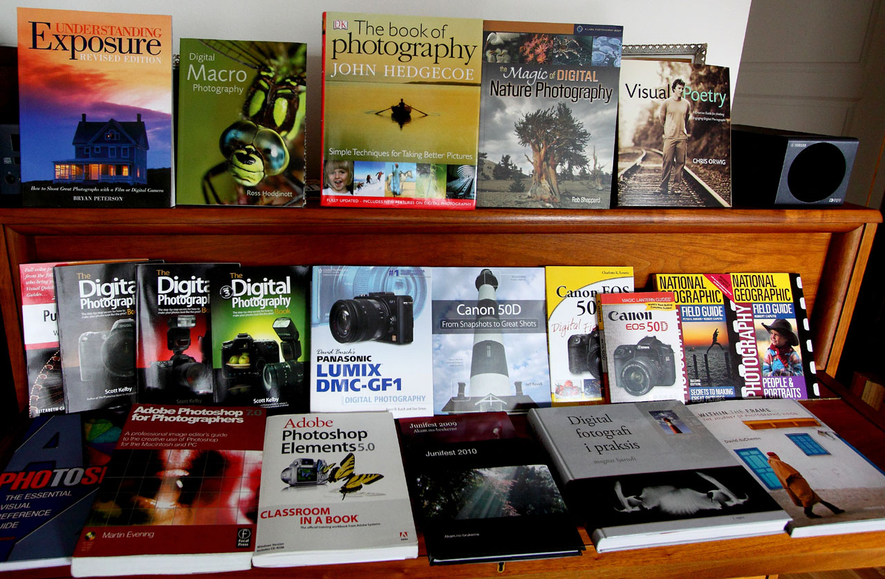 RandiA Skrevet 11. april 2011 Forfatter Skrevet 11. april 2011 (endret) Det er da "estetisk vakkert" å bla i Fotobøker. Her er noen av mine. Ikke lest dem fra perm til perm alle, men slått opp og kikket etter behov. Tror jeg har et par og tretti i tallet, ikke alle står i hyllen. (Jeg la inn hage/natur-bøker først, men det er vel mer riktig med disse i et fotoforum): Bilde 11 – 11.April: Fotobøker - Også et vakkert syn Exif: 0.3– f/4.5 - ISO 1000 Exposure Compensation:-1/3 Lens:EF-S60mm f/2.8 Macro USM Camera Model:Canon EOS 50D Fotobøker on display Lens:EF-S10-22mm f/3.5-4.5 USM Focal Length:13.0 mm: Endret 11. april 2011 av RandiA