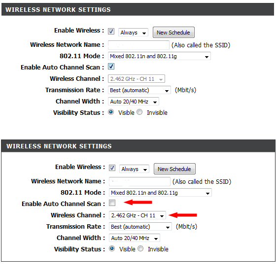 Syar-2003 Skrevet 26. april 2011 Skrevet 26. april 2011 (endret) WIFI routeren er sikkert satt opp med kanalvalg til "Auto" og har skiftet kanal til en som ikke virker på mobilen men OK på PCene. Don't use 10. Or 9, 8, etc.The ONLY channels to use are 1, 6, or 11 http://forums.whirlpool.net.au/archive/1502414 Så sett opp trådløs routeren f.eks til fixed kanal 11 Eks med min d-link router (i manual WIFI setup seksjon) Endret 26. april 2011 av syar2003