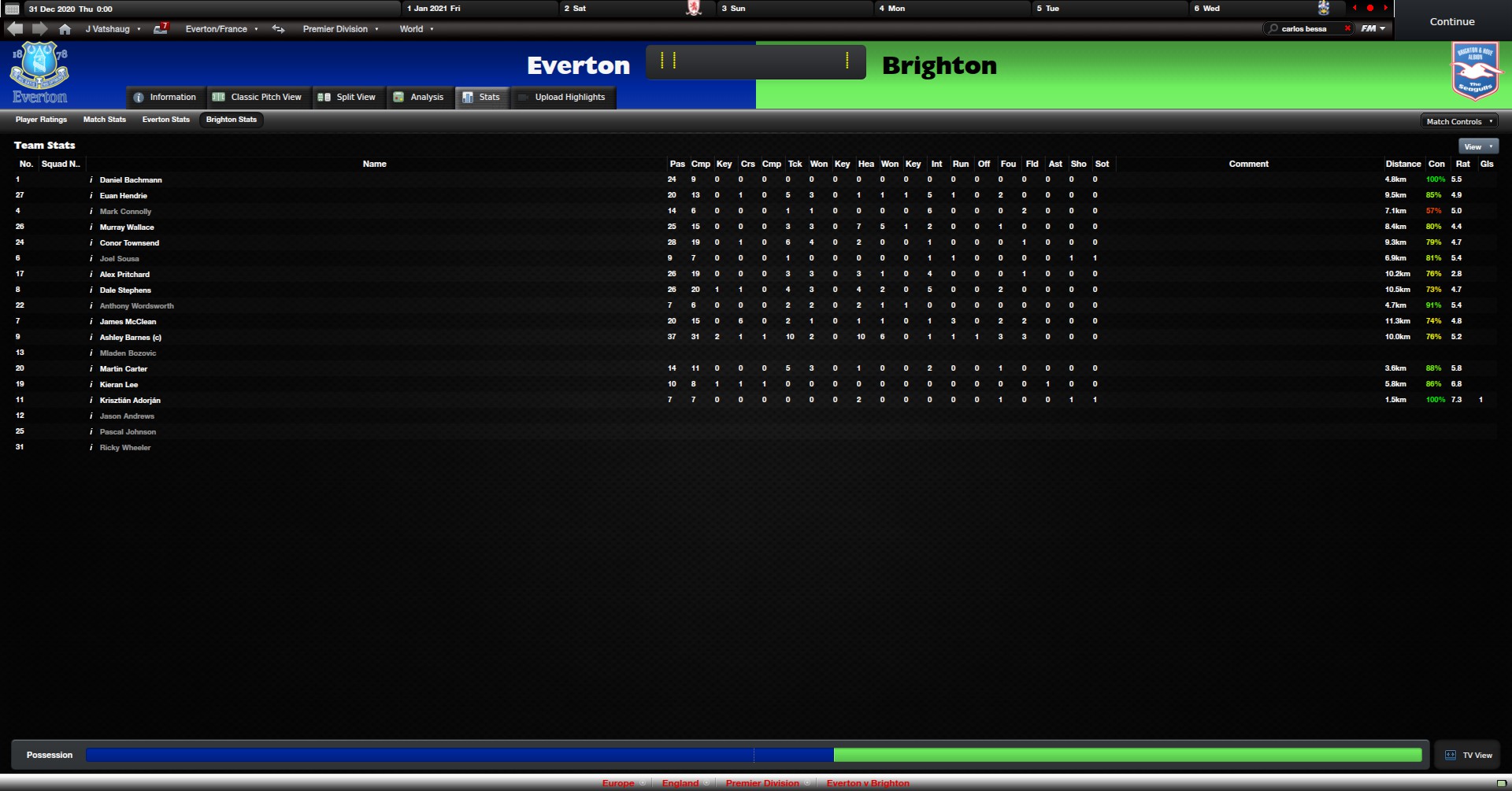 Thommesen Skrevet 8. september 2012 Skrevet 8. september 2012 (endret) Wow, du slapp kun inn 13 mål! Jeg er også RBK i 2018, men er kun i min 2.sesong med klubben. Vant the double første sesong, og styrer mot en ny ligatittel, men fikk juling i cupen. Styrer også Chile, og skal spille VM semifinale mot Frankrike etter at jeg slo ut Spania (!!!!) i kvarten. Sykt VM egentlig: N.Irland kom til kvarten, og Sør-Afrika er allerede klar for finale. Dette viser bare hvor fucka regen systemet er. Jeg har alle de store europeiske ligaene som aktive, så de får kun normalt gode regens, mens randome land som Scotland og N.Irland får latterlige gode regens, fordi ligane ikke er aktive her. Merkes godt i skandinavia også - sverige og norge er aktive, men ikke Danmark: det ene syke talentet etter det andre kommer derfra, og gratis er de også. Fucker hele dynamikken i spillet, har lyst å slå av hele Danmark EDIT: leder 4-0 mot Frankrike - to mål av Vidal! *2 : og så blir mine to beste spillere dette VM'et suspendert, og mister finalen... *3 : verdens beste landslag kommer fra Sør-Afrika. Uten mine to beste spillere blir jeg ydmyket fullstendig. Endret 8. september 2012 av Thommesen