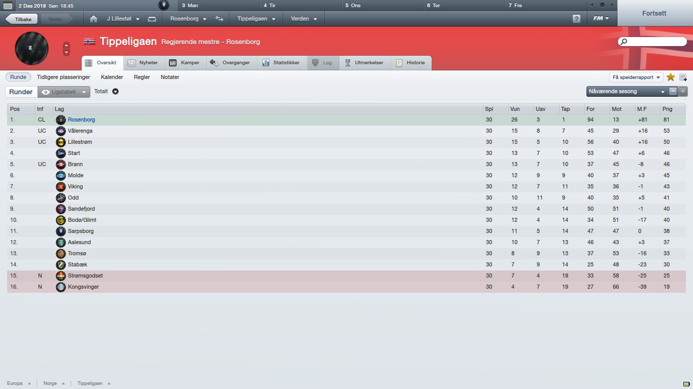 Rbk89 Skrevet 9. september 2012 Skrevet 9. september 2012 Wow, du slapp kun inn 13 mål! Jeg er også RBK i 2018, men er kun i min 2.sesong med klubben. Vant the double første sesong, og styrer mot en ny ligatittel, men fikk juling i cupen. Jeg har spilt med Rbk siden jeg starten den gamen vunne Cupen 4ganger også TL4 Ganger komt meg te CL gruppespille kvar sesong eg har vunne TL å de dårligste eg har gjort er 3.plass i gruppa å komt til Europa League