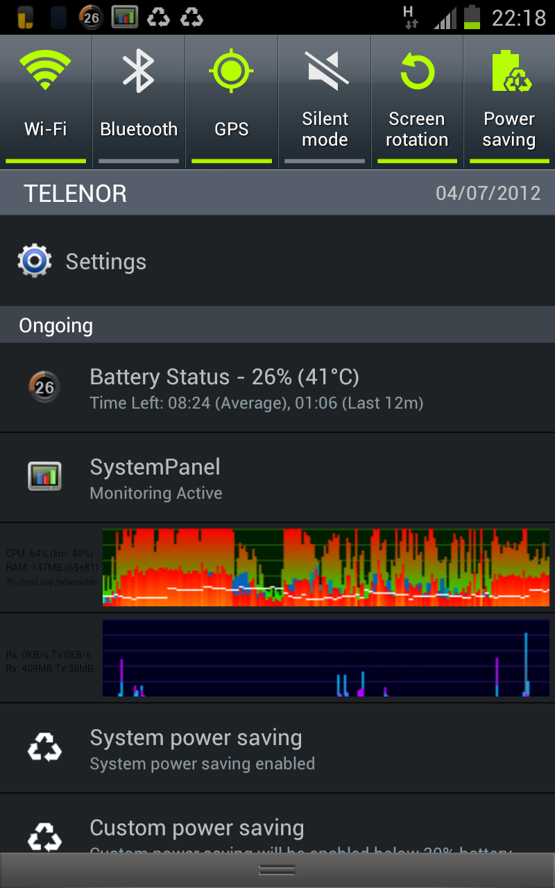 doraemon Skrevet 5. juli 2012 Skrevet 5. juli 2012 (endret) Ett ord: Argh. En bortimot perfekt mobil ligner nå faretruende på min forrige møkkamobil av dimensjoner LG Optimus 2X. - Har deep sleep problemet. - Når jeg bruker den renner strømmen ut. - Har blitt generelt tregere og henger seg opp støtt og stadig med full load på cpu'en. Særlig dette irriterer meg, og var nesten ikke tilfelle før oppgraderingen. Ref bildet så så jeg nesten aldri grafen gå i taket før. - Kameraet starter tregt og har fått lag etter hvert bilde. I det hele tatt. Masse mer jeg kunne ramset opp. Får prøve å ta en fabrikkreset og se om det hjelper? Bare så pes å installere alt på nytt igjen. Argh. Endret 5. juli 2012 av doraemon