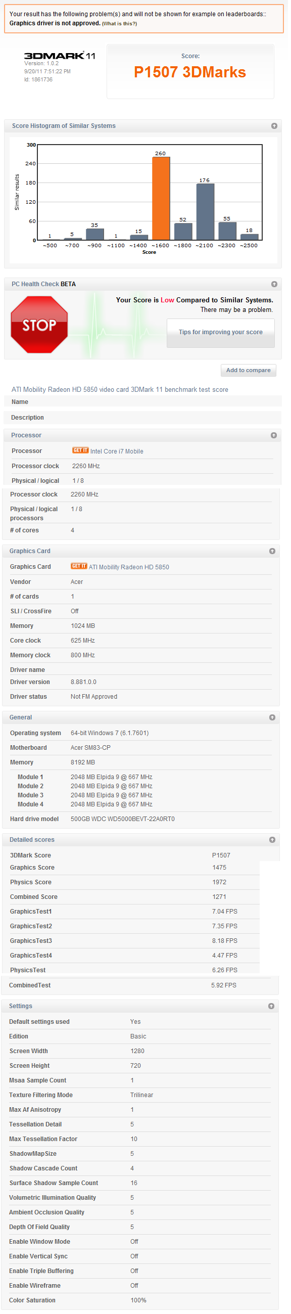 Rosoero Skrevet 20. september 2011 Forfatter Skrevet 20. september 2011 (endret) Hardware'n i den maskinen er snart 2 år gammelt. Hvis du har kjøpt maskinen ganske nylig, har du kjøpt en maskin med utdatert hardware. Håper du fikk et betydelig prisavslag da. En grundig rens av maskinens indre bør gjøres med jevne mellomrom, minst 2 ganger i året, hvis man vil unngå problemer med varme og svekket ytelse. Det gjelder spesiellt maskiner i budsjettsegmentet, da kjøleløsningene i disse ofte ikke er så veldig bra i utgangspunktet. Når det gjelder Acer, så er de nettop en av disse. De satte også konsekvent DDR3 minne på Hd 5850 grafikkortet i stedet for DDR5, slik at ytelsen på skjermkortet ikke blir så bra som det kunne ha vært. Men det er bedre at du kommer med noen eksempler, målinger på hvor mye fps du får i forskjellige spill, med hvilken oppløsning, og med hvilke settinger på grafikkdetaljene - ellers er det vanskelig for andre å bedømme hvorvidt du har for dårlig ytelse enn det du skulle ha hatt. Du kan bruke programmet Fraps til dette. Google. Og benchmarker som 3dMark Vantage eller 11. Google. Temperaturmålinger kan være nyttige også , her kan du bruke f.eks. programmet HWMonitor. Google. Da har jeg kjørt 3Dmark 11 og sett på HWmonitor etter testen.. Håper dette sier deg noe. Drivere er også up to date selv om testen sier noe annet. Endret 20. september 2011 av Rosoero