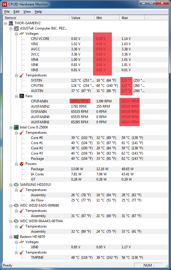 Thor. Skrevet 9. desember 2011 Skrevet 9. desember 2011 Kjøpte meg en oppgradering for en måneds tid siden. Denne bestod av følgende: http://www.mpx.no/k/shoplist.aspx?mode=receive&si=1020392&su=8478CED3-4436-4BBF-8FB1-610CF99BFECD I tillegg har jeg: Cooler master storm sniper (med 3x200mm vifter og 2x120mm) 4 harddisker der en er SSD Etter en stund har jeg begynt å finne problemer og feil som irriterer. Maskinen fungerer og er så stabil som man kan forvente. Jeg formaterte for en ukes tid siden og gikk på Asus sine sider og hentet nyeste drivere og programvare. Så alt av drivere er oppdatert og nytt. Allikevel skjer det merkelige ting her og der. Når jeg setter maskinen i ventemodus fortsetter viftene å rotere, men på et minimums turtall. Slik kan de fortsette hele natta. Dette gjelder kun viftene som styres av viftereguleringen på kabinettet. Jeg får hele tiden (flere ganger for timen) meldingen "lydenhet koblet fra" og sekundet etterpå er den plutselig koblet til igjen. Når dette skjer halveres gjerne volumet, vet ikke om volumet justeres ned på ale programmer eller om det kun skjer i Spotify. Meldingen dukker også opp når alle lydkontakter bak og forran på kabinettet er tatt ut, bruker i perioder lyd kun via USB enheter. Ofte, ikke alltid, så skjer det samme (volumet halveres). Bare at det skjer når jeg setter inn eller tar ut en USB enhet (minnepenn eller lignende). Ellers så er det endel temperatursensorer som jeg tror har klikka litt.. Vet ikke helt hvor jeg skal begynne så jeg lurer på hva dere vil råde meg til å gjøre.