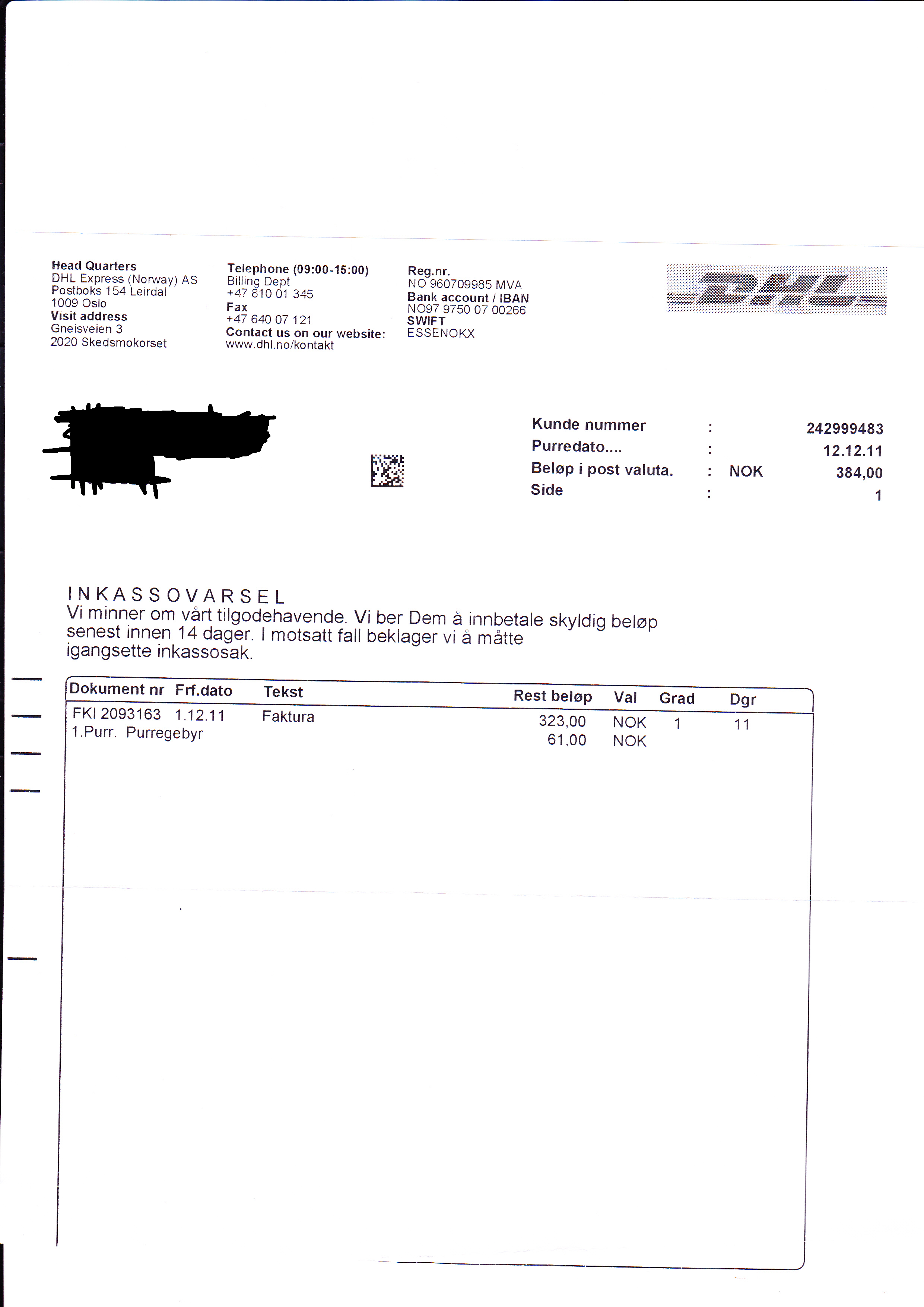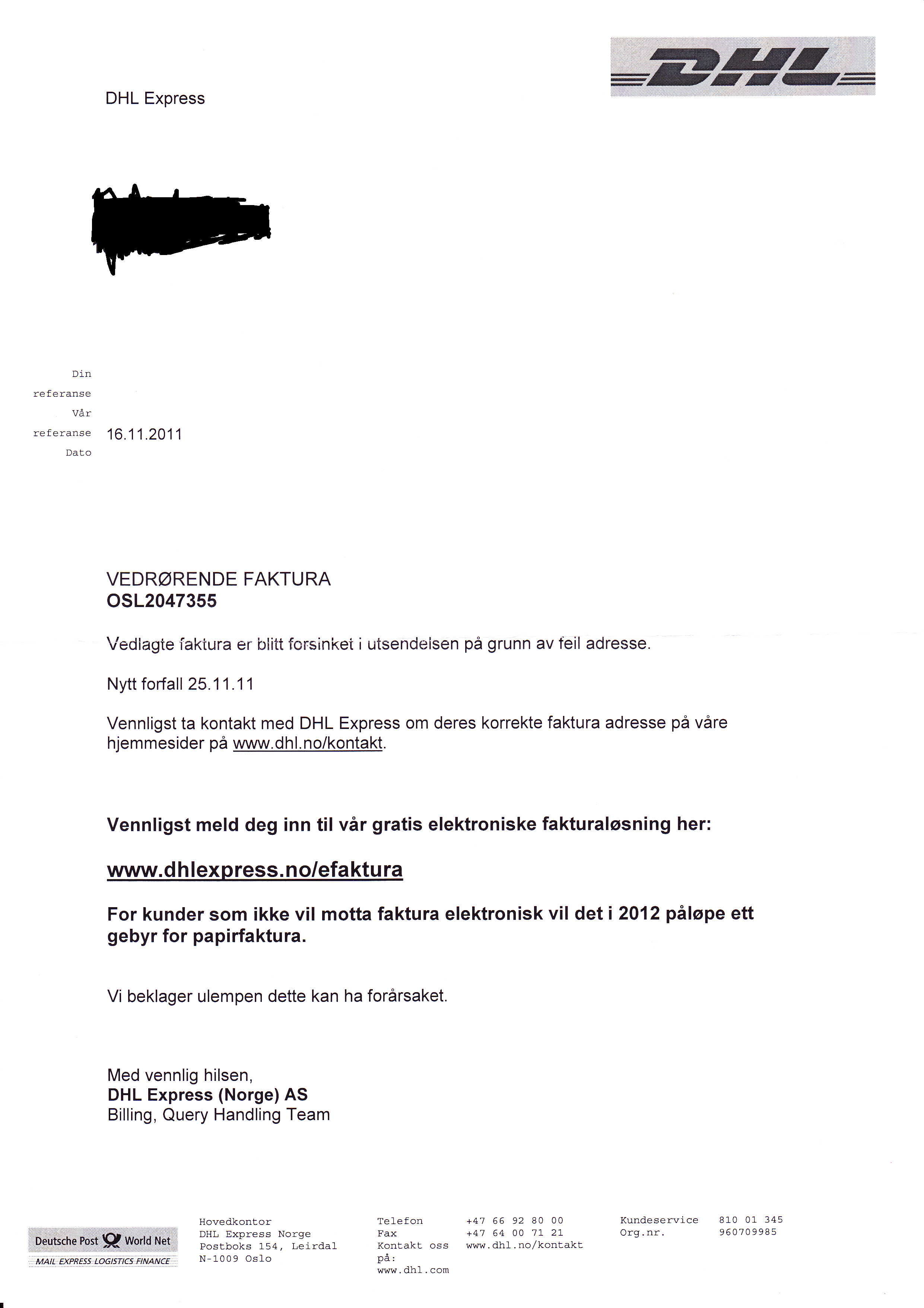 VoltMoon Skrevet 16. desember 2011 Skrevet 16. desember 2011 (endret) Styr unna alle nettbutikker og selgere som bruker DHL.NO! Jeg skal gi dere grunnen til dette. I sommer 2011 bestilte jeg en Sanwa Fightstick fra kina. Denne ble sendt gjennom DHL og DHL budmannen kom og leverte denne varen rett på døra min i 12 Juli 2011. Jeg får regningen for denne varen i november 2011 med 25.11.11 som forfallsdato. Og må betale 60 kroner ekstra fordi denne regningen ble sendt som en purring noe som er helt uforståelig.På brevet står det at de beklager og på fakturaen må jeg betale 60 kroner ekstra i purring fordi de klarte å sende regningen til feil adresse. De leverer pakken rett på døren min men klarer å sende regningen til feil adresse noe som er helt uforståelig. DHL2.bmp En annen nettbutikk som bruker DHL.NO er http://www.duracelldirect.no! Jeg bestilte varer fra denne nettsiden 10 april 2011! Varen ble levert av DHL budmannen 21 april 2011. Tollregningen ble aldri sendt til postkassen min og plutselig idag får jeg en innkassovarsel av DHL! Jeg har aldri fått fakturaer fra DHL for pakken som jeg kjøpte gjennom duracelldirect.no! 9 måneder senere sender de innkassovarsel uten å sende meg en eneste faktura. DHL truer med innkalle en inkassosak når de ikke har sendt meg en eneste faktura på 9 måneder. Så idag betalte jeg inkassoregningen min. DHL3.bmp Men for all del hold dere unna alle nettbutikker og selgere som bruker DHL. Be dem heller sende det som normal postpakke og la det bli levert av posten.no! Posten Norge sender alltid regningen i tide, men privatselskaper som DHL er veldig slurvete og dere bør seriøs holde dere unna DHL. Jeg har enda ikke kontakt forbrukerrådet men synes dere jeg burde gjøre dette? Kanskje skaffe meg en advokat og saksøke DHL for at de ikke utfører jobben sin ordentlig? Endret 16. desember 2011 av VoltMoon 2