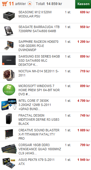 olaflaaten Skrevet 27. januar 2012 Forfatter Skrevet 27. januar 2012 (endret) først og fremst, Hei og velkommen til forumet deretter vil jeg fraråde deg å gå for en "komplett-PC", delene er ofte lagt opp til at du skal betale mest og det er lite utvalg jeg vil mye heller anbefale deg å bygge selv, det ikke vanskelig og du får bedre ytelse for penga her er mitt forslag: - lydkort for å få kjempe bra lyd - grafikkort for GPU akselerering - rå prosessor ytelse i redigering Tusen takk for hjelp! Dette ser jo veldig bra ut. En venn av meg som har mye erfaring med PC mente at det kanskje var litt svak PSU og at det kanskje ikke var så mye å tjene på å ha med "dedikert lydkort". Hva tenker du om det? Ser du har brukt Dustin.no til ditt forslag. Vil du anbefale den fremfor komplett.no? Endret 27. januar 2012 av olaflaaten