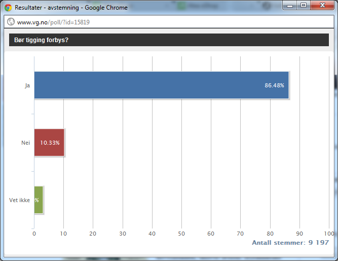 Uderzo Skrevet 12. juli 2012 Skrevet 12. juli 2012 Dette er en klar indikasjon hva folk syns om tigging. Folk flest vil ha vekk sigøynerne, vi er dritt lei, bokstavelig tatt, av forsøpling, stjeling, dårlig oppførsel og bæsjing i gatene våre. Det er på tide at vi forbyr tigging, ihvertfall for utenlandske borgere. 1