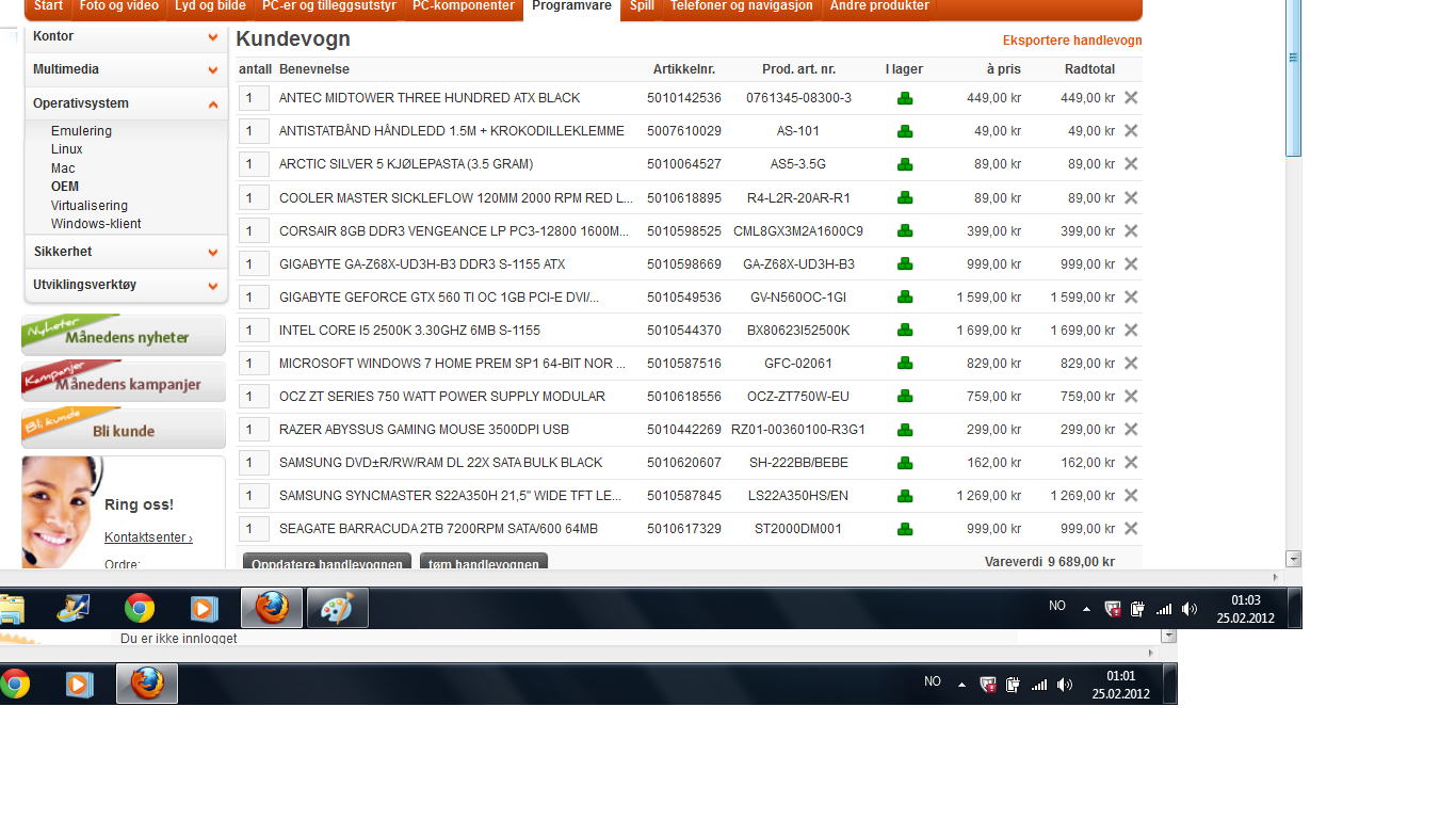 Olestokk Skrevet 24. februar 2012 Skrevet 24. februar 2012 Har en som skal ha pc. Han sier at han må kjøpe programvare (w7 og antivirus system) noe som koster 1,5k++.. er ikke det unødvendig når man skal bygge pc selv? for sånnn jeg har forstått det så foretrekker de fleste å laste ned fra nett, brenne på cd og overføre til den nye pcen... Hva burde han? jeg foretrekker å kjøre det lovlig jeg... altså kjøpe lisens, det koster 830kr for windows 7 OEM lisens (bindes til hovedfkortet og er vanskelig å bruke på andre PCer) antivirus finner man gratis, microsoft security essentials virker godt nok for de fleste (med mindre du selv tøyer grensene og gjør ting som ofte skaffer folk virus)
