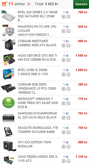 Olestokk Skrevet 9. mars 2012 Skrevet 9. mars 2012 forslag: det der var en veldig bra maskin, men jeg ville gådd for en I7 2600K i stedet for en I5 og SSD, med SSD merker man mye på OS men ikke på spill, om man spiller bør man vente litt med SSD til man har skikkelig CPU. ( jeg klager ikke BTA (: ) ikke for å klage, men nå tror jeg ikke du vet helt hva du snakker om, i5 2500K er like god i gaming som i7 2600K og 2700K det i7 har over i5 er hyperthreading, noe som kun rundt 1% av spill kan bruke, og de som kan bruke det bruker nye motorer som tar mye mer bruk av skjermkort, så skjermkortet er flaskehalsen før man har rundt omkring 2 stk. HD 79*0 kort i CFX