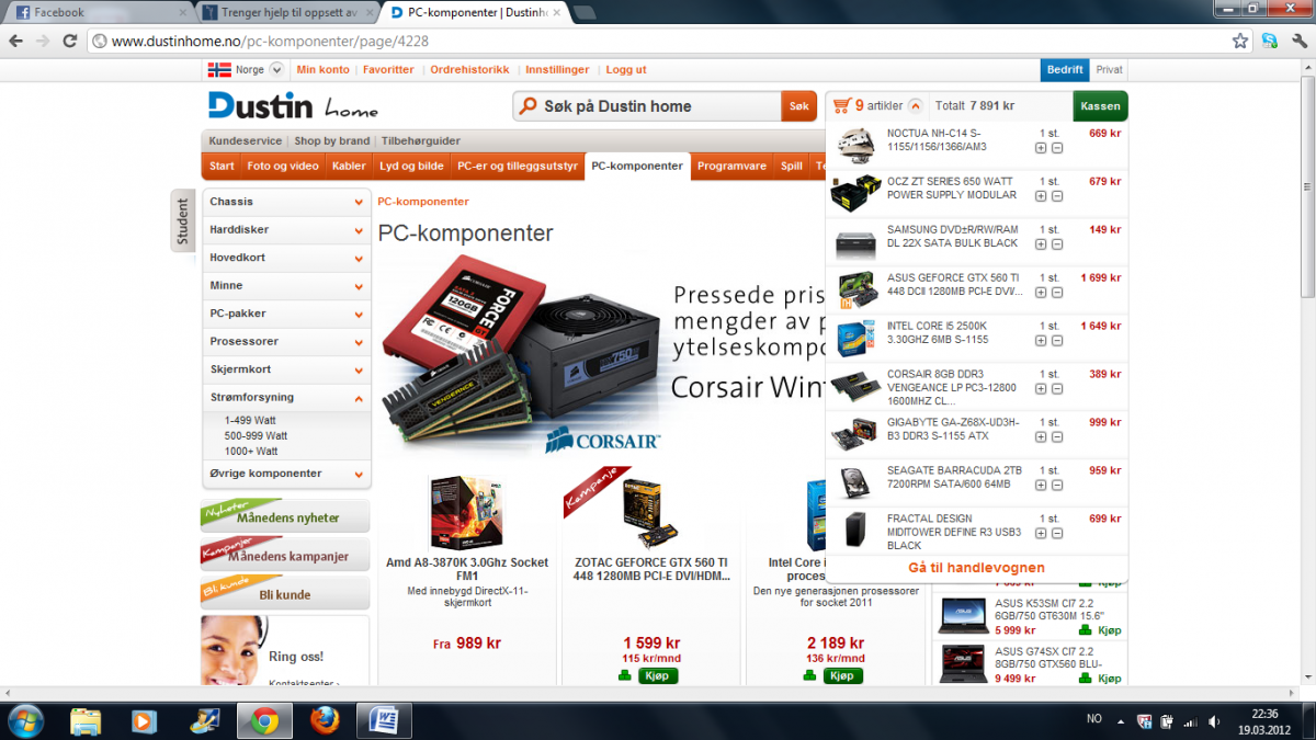 Morriin Skrevet 19. mars 2012 Skrevet 19. mars 2012 Har finne en del deler på mpx.no, men jeg vil helst vite om de fungerer sammen før jeg kjøper noe. Kriterien er som jeg sa i emnefeltet at den skal kunne dra SkyRim og BF3. Jeg tar også imot tips om forbedringer, men jeg vil helst ikke overskride 8000 (ekskludert frakt). Deler: - Prosessor: http://www.mpx.no/k/ki.aspx?sku=650173 - Kabinett: http://www.mpx.no/k/ki.aspx?sku=604788 - Strømforsyning: http://www.mpx.no/k/ki.aspx?sku=745087 - HovedKort: http://www.mpx.no/k/ki.aspx?sku=638763 - RAM: http://www.mpx.no/k/ki.aspx?sku=599037 - Internminne: http://www.mpx.no/k/ki.aspx?sku=653050 - Skjerm Kort: http://www.mpx.no/k/ki.aspx?sku=623768 - CD/DVD Rom: http://www.mpx.no/k/ki.aspx?sku=494479