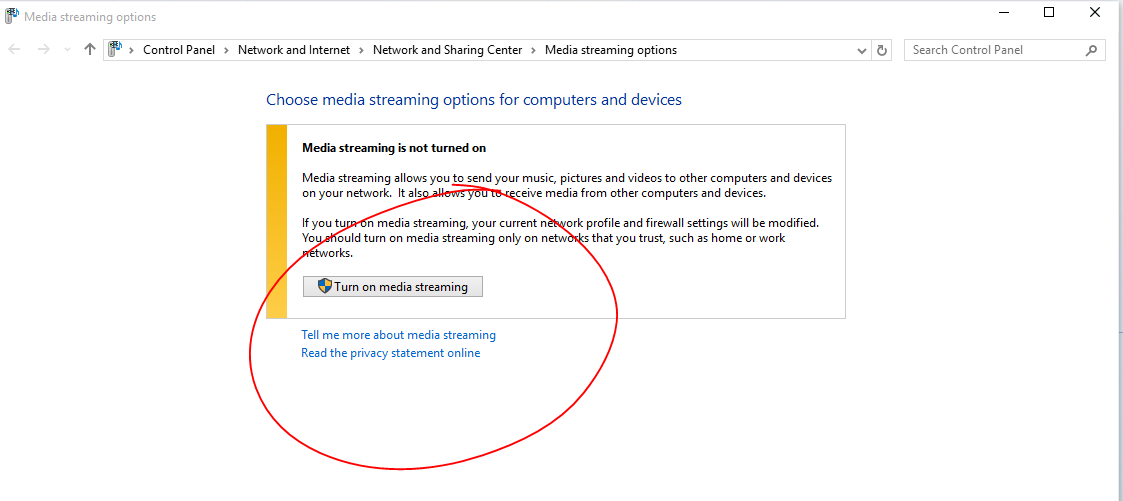 Kan hende du må tillatte strømming via nettverket i Windows Media Player først.
