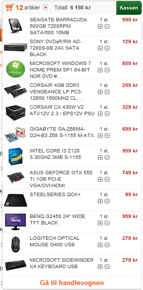 Gjest Slettet+5132 Skrevet 14. april 2012 Skrevet 14. april 2012 Hvordan lager man handleliste på dustin, slik at andre kan se den uten å ta skjermdump? Tror han skal gå for dustin, han må spørre foreldrene sine først , Men i3 2120 og gtx 550 slår a8, tem´nker du da på bare a8 og bruke APU? Ja. Du går ikke for A8-3870K+ ett skjermkort. Ok da blir det Intel