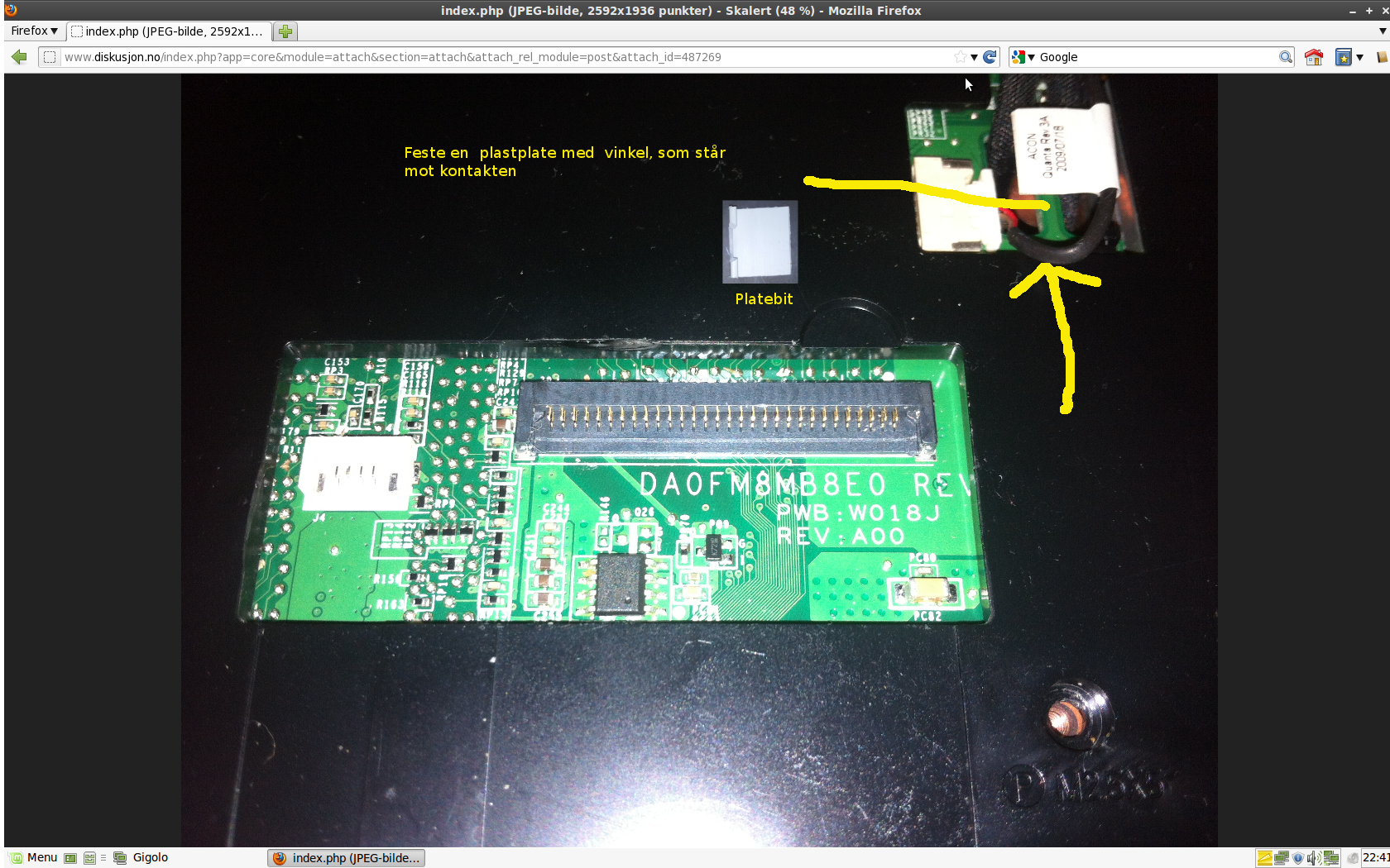 fsx v1.1 Skrevet 19. april 2012 Forfatter Skrevet 19. april 2012 Hei har en dell studio 1555 og på hovedkortet er det en hengsel som holder tastatur ledningen fast og klarte og knekke den tingen og nå kan jeg ikke låse kabelen inn i plass på hovedkortet hva gjør jeg nå?? Hvis det er denne opp til Høyre. Få tak i en kabelkanal lokk eller annet med kant 90grader. Lim denne fast i printet med superlim og la de stå inn mot kontakt. se bilde snakker om denne! skal egentlig sitte en plastbit/hengsel der