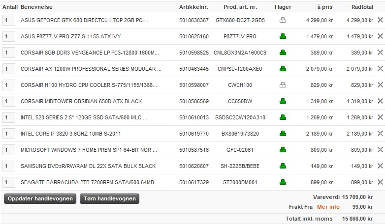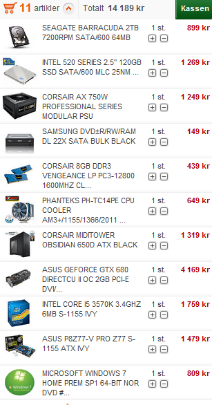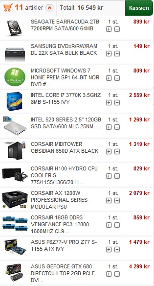 Rupix Skrevet 5. mai 2012 Forfatter Skrevet 5. mai 2012 (endret) Da ser det slik ut, hva synes dere? Totalt pris på 16 549,- kr Endret 5. mai 2012 av Rupix