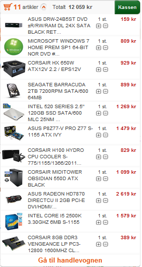 Rupix Skrevet 5. mai 2012 Skrevet 5. mai 2012 Hei! Jeg skal kjøpe meg en ny gaming pc, men vet ikke helt hvilke deler / spec jeg skal gå for. Prøver å få mest mulig for pengene, ønsker å bruke rundt 20000,- kr til sammen. Har funnet noen deler fra komplett.no som kommer på 25000,- men vet ikke om dette er et bra kjøp eller ikke. Trenger hjelp og gjerne noen gode forslag. Her er delene jeg har funnet fram til så langt: Kabinett:Corsair Obsidian 650D Midi Tower Sort Strømforsyning: Corsair HX 1050W PSU Hovedkort: MSI Z77A-GD55, Socket-1155 Prosessorer: Intel® Core i7-2600K Vannkjølingssystem CPU (lukket): Antec Kuhler H2O 920 DDR3 minne: Kingston DDR3 HyperX 1600MHz 16GB Skjermkort: 2x XFX Radeon HD 7970 3GB Harddisk SSD: 2x Kingston HyperX SSD 120GB 2.5" Harddisk: Seagate Barracuda® 1TB Optisk leser/brenner: Lite-On DVD±RW Writer IHAS124-19 Operativsystem: Hva er forskjellen mellom Microsoft Windows 7 Ultimate 64bit og Microsoft Windows 7 Home Premium 64bit? (skal kun brukes til gaming) Takker for alle fine svar og tilbakemeldinger!