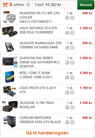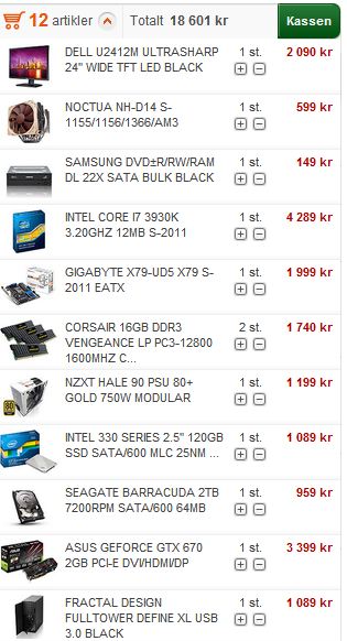 Simkin Skrevet 15. mai 2012 Skrevet 15. mai 2012 (endret) Her har du en grei rigg til rundt 14.000 http://www.komplett....2B-15A7944C5704 evt om du har veldig lyst på socket 2011 http://www.komplett....81-55ABF51A22F4 Edit: glemte av PSU, så da ble litt dyrere. Endret 15. mai 2012 av FiveInline