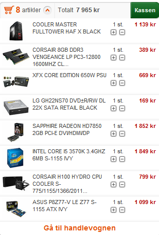 Elvis Plesly Skrevet 21. mai 2012 Skrevet 21. mai 2012 Hei! Lurte på om oppsettet mitt passer? (Ja har ikke harddisk, har det allerede, samt OS). Det jeg bekymrer meg for er da egentlig vannkjøleren, men kan godt gå til en mindre en (noen dere kan anbefale?) Her er det: