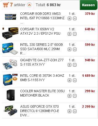 hlnd Skrevet 2. juni 2012 Skrevet 2. juni 2012 (endret) Ser ikke verst ut, det der. GTX 660 er det neste kortet i 600-serien Nvidia skal slippe, så om du vil vente, passer vel det temmelig godt til budsjettet ditt, ellers er GTX 670 et godt valg om du vil gå opp. Ellers er HD 7850 og 7870 gode kort i samme prisklasse, men fra spillene du nevner, er det Battlefield som er tyngst, og der yter GTX 570 bedre per krone. 7850 og 7870 vil imidlertid overklokke bedre, støye mindre og trekke mindre strøm. http://www.anandtech...duct/518?vs=548 Om du vil kjøpe nå, og holde deg under 7000,- totalt, er oppsettet helt fint Du mangler jo en harddisk Har ikke behov for noen andre deler enn det jeg har lagt til der. Endret 2. juni 2012 av hlnd