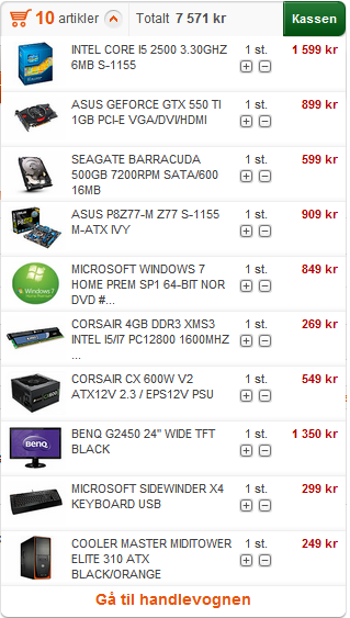 Gjest Slettet+5132 Skrevet 11. juni 2012 Skrevet 11. juni 2012 (endret) Hei, skal hjelpe en venn med å sette sammen en gamingPC. PC-en skal brukes til Runescape (slik det skrives?) og BF3. Skjerm og OS samt tastatur, skal være inkludert. Foretrekker å handle fra DustinHome. Han har sett seg ut et kabinett, dette, fordi det er billig og jeg har gode erfaringer med det (ift. prisen). Noe mer dere lurer på er det bare å spørre. Saxy98 Edit: endret emnetittelen Endret 12. juni 2012 av Slettet+5132