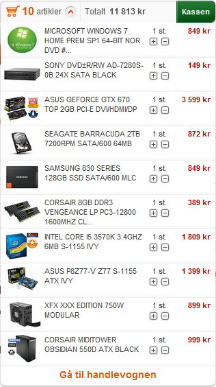 MariusJS Skrevet 16. juni 2012 Skrevet 16. juni 2012 Endre: SSD:https://prisguiden.no/produkt/samsung-ssd-830-series-128gb-151500 HK:https://prisguiden.no/produkt/asus-p8z77-v-pro-157694 denne har innebygd WIFI CPU:https://prisguiden.no/produkt/intel-core-i7-3770k-157374 GPU:https://prisguiden.no/produkt/asus-geforce-gtx-670-2gb-directcu-ii-158956 RAM: du har ikke spesifisert, det kan være lurt med Low Profile eller "XMS3" Kjøler: det kan være lurt med en 3. partskjøler