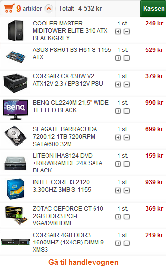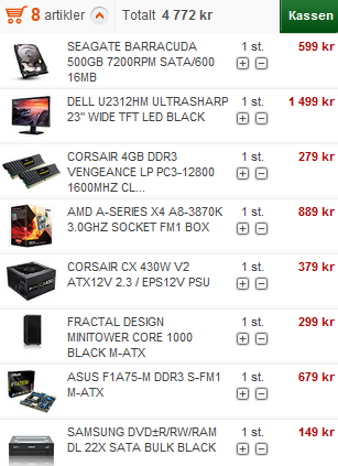 Vuz' Skrevet 17. juni 2012 Forfatter Skrevet 17. juni 2012 (endret) Her er et forslag, men det kommer 200 kr over budsjetet da ! Jeg trenger ikke windows 7, dersom jeg kan få windows 8 gratis, da er jo det 790 kroner mindre. Og da er vi ca 500 kroner under budsjettet. Men det ser vel ut som ett bra oppsett det? Han har tatt en titt på det, ikkesant? for det er litt, umm, merkelig Uansett, jeg har ikke fylt ut helt på prisen, men det er en grei allrounder da ihvertfall: Den virker vel til det aller meste, den er ikke den beste, men den kan til og med kjøre spill hvis det er ønskelig (bare ikke forvent noe mer enn Low og Medium). Hva som er merkelig? Han er ikke av den typen som spiller, selv om jeg lenge har prøvd å få han til å begynne, men nytter ikke. Så da trenger vi ikke bekymre oss for at den skal kjøre spill. Jeg rekner med at dette er ett bra oppsett det og! Takker for kjappe svar! Endret 17. juni 2012 av Vuz'
