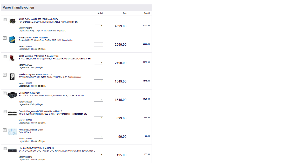 ei57 Skrevet 22. juni 2012 Skrevet 22. juni 2012 Det er ikke så mye å utsette på delene du har valgt, men du kan spare endel på å sjekke hva konkurrentene tar. Prisjakt.no er et utmerket sted å starte. HK'et du har valgt er kanskje noe overkill og heller ikke siste brikkesett. Ville heller gått for Asus P8Z77-V Pro, som du får fra i underkant av kr 1500: http://www.prisjakt.no/product.php?p=1168004 Corsair HX 850 er ingen dårlig PSU, men passer bedre til et oppsett med 2 skjermkort. Ville heller valgt en Corsair AX, NZXT Hale 90 eller Seasonic X i 650 watt, avhengig av pris i butikken(e) du handler i. Corsair HX kommer dessuten i ny utgave, men har ennå ikke kommet i salg her til lands. Noen av de kronene du eventuelt sparer på HK'et, ville jeg lagt i en CPU-kjøler. En Cooler Master Hyper 212 EVO koster fra 225 eller en Noctua NH-D14 til 588. Går du for en slik løsning, bør du endre minne til en LP (low profile) utgave av f.eks. Corsair Vengeance.